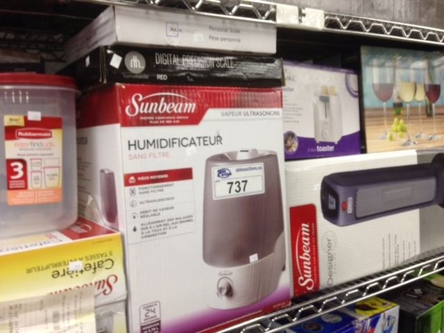 SHELF LOT OF HOUSEHOLD ITEMS INCLUDING HUMIDIFIER, TOASTER, ETC.