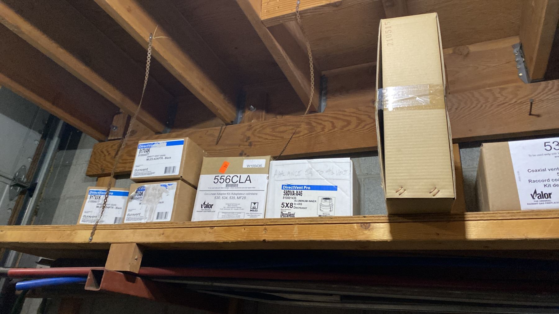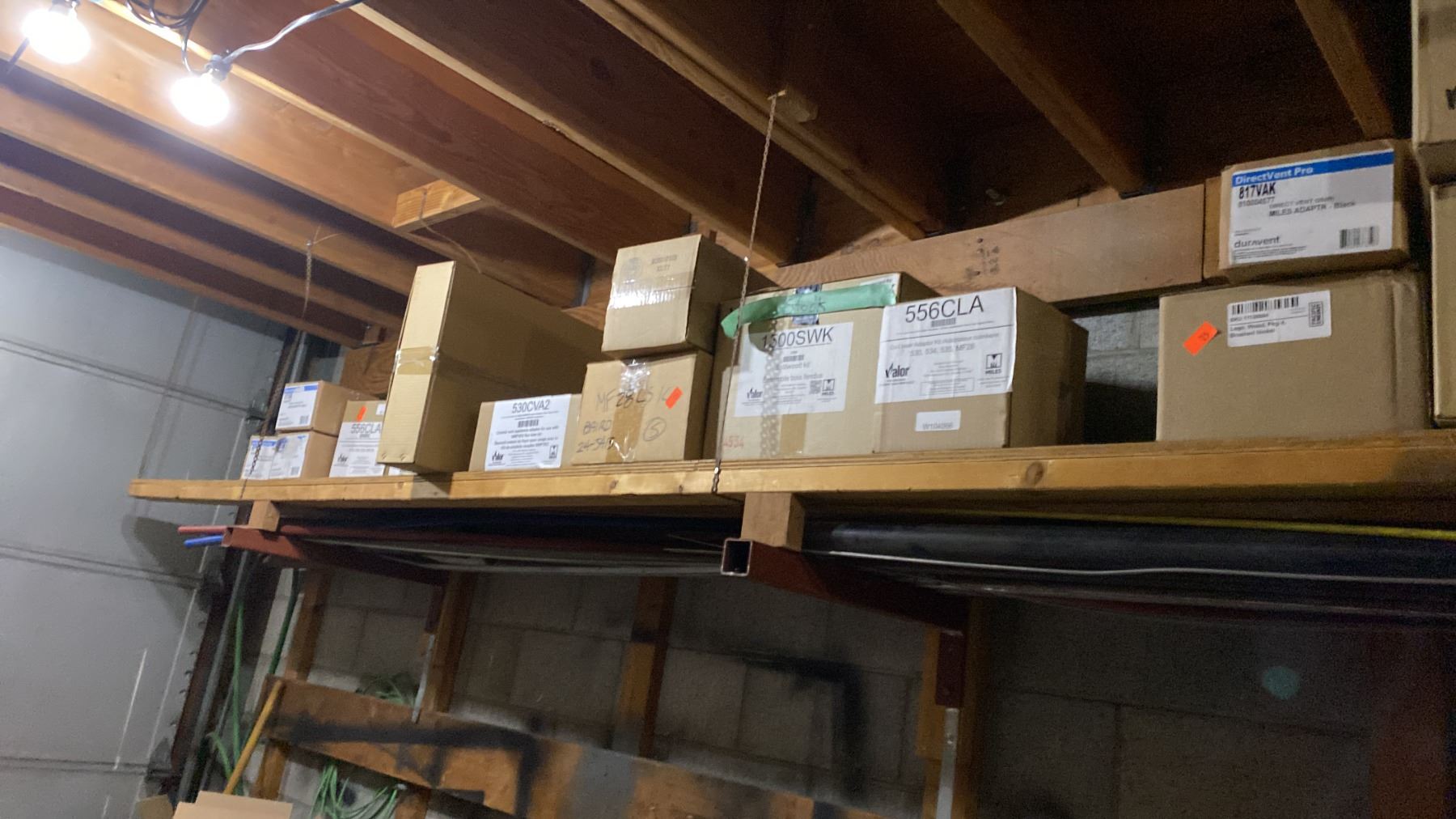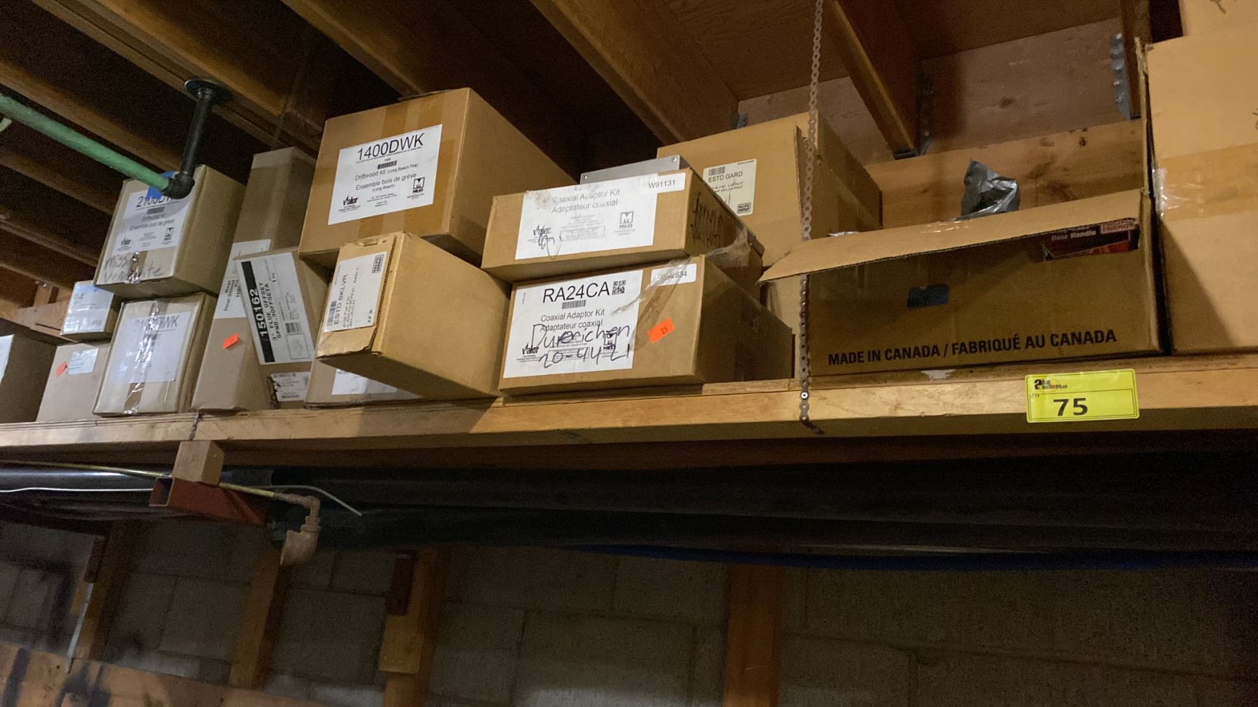 SHELF LOT OF INSTALLATION COMPONENTS AS PER PHOTOS. APPROX. 40 BOXES