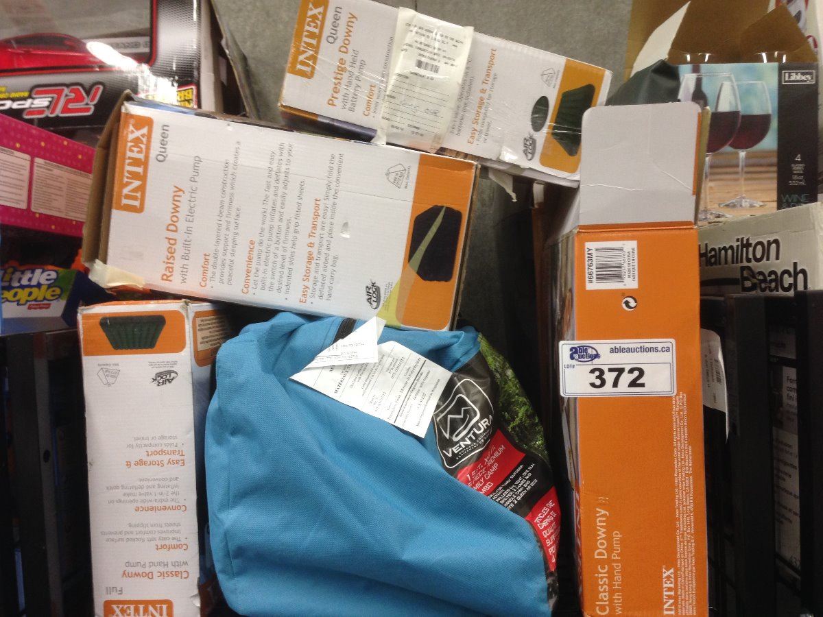SHELF LOT OF INTEX AIR MATTRESSES AND 5 PIECE PREMIUM CAMP COMBO