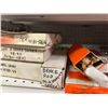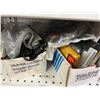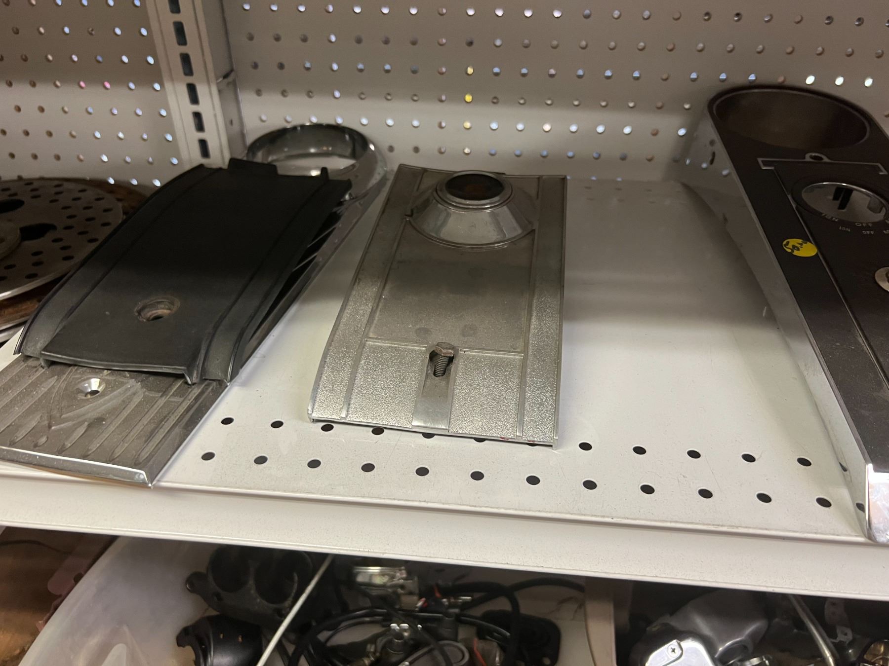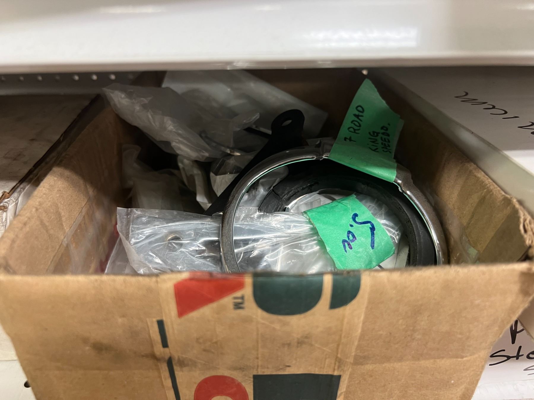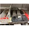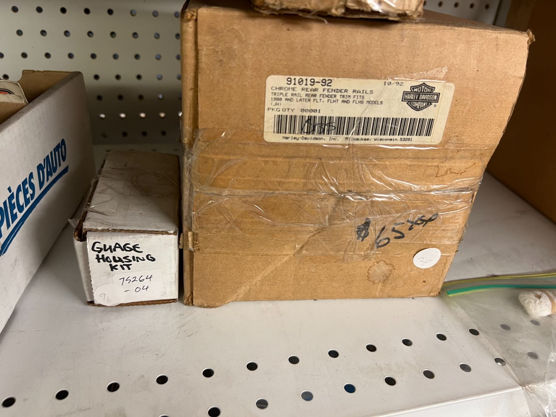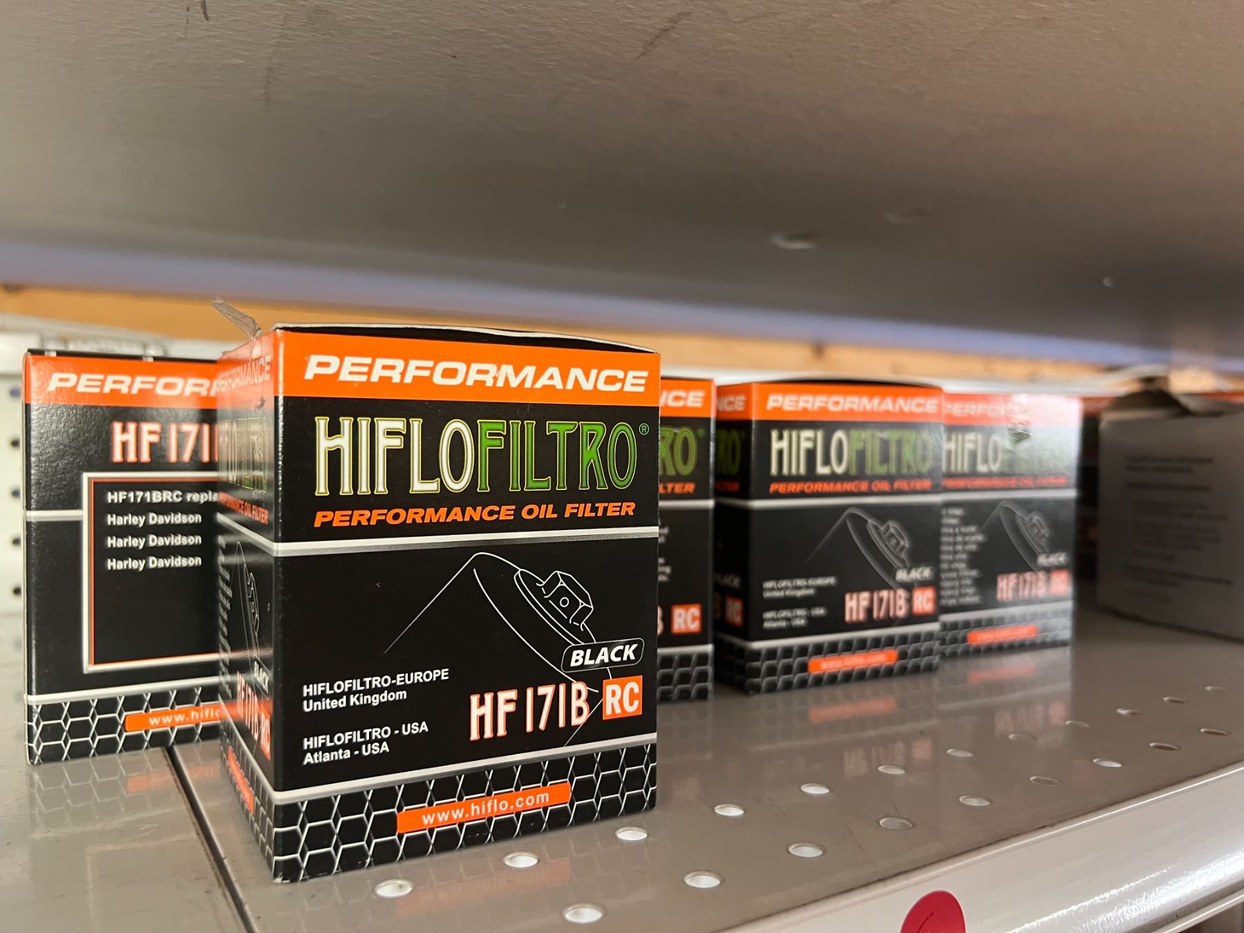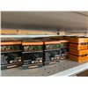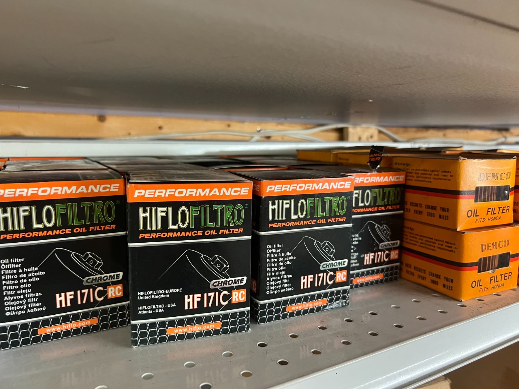 SHELF LOT OF INVENTORY - HARLEY-DAVIDSON HIGH FLOW FILTERS (APPROX 50 PIECES) IGNITION SWITCHES & KEYS, FENDER RAILS, HORNS, BRAKE SHOES, STEREO HELMET SETS, BRAKE CALIPERS ETC