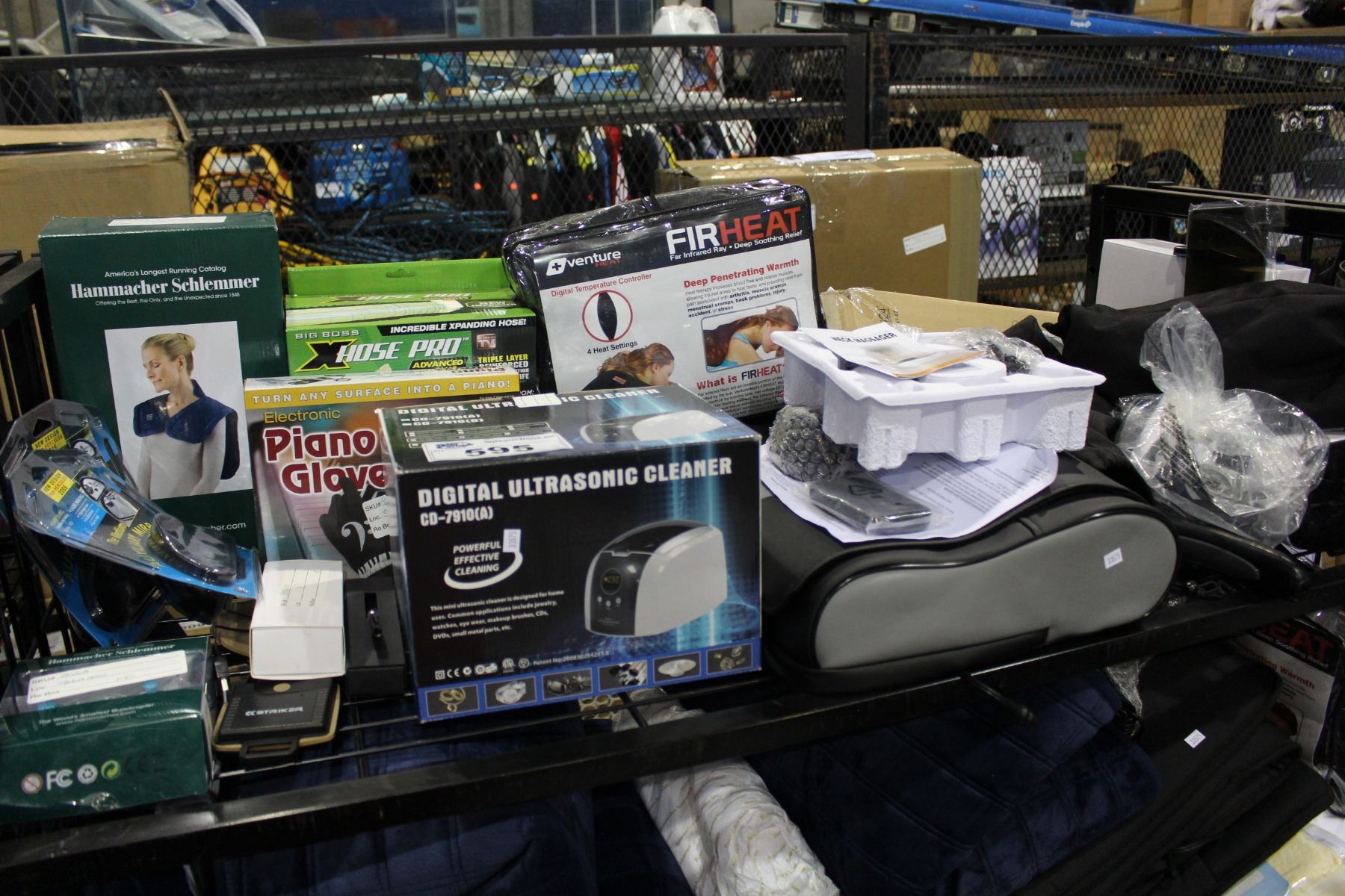 SHELF LOT OF JEWELLERY CLEANER, HEATING PAD AND MORE