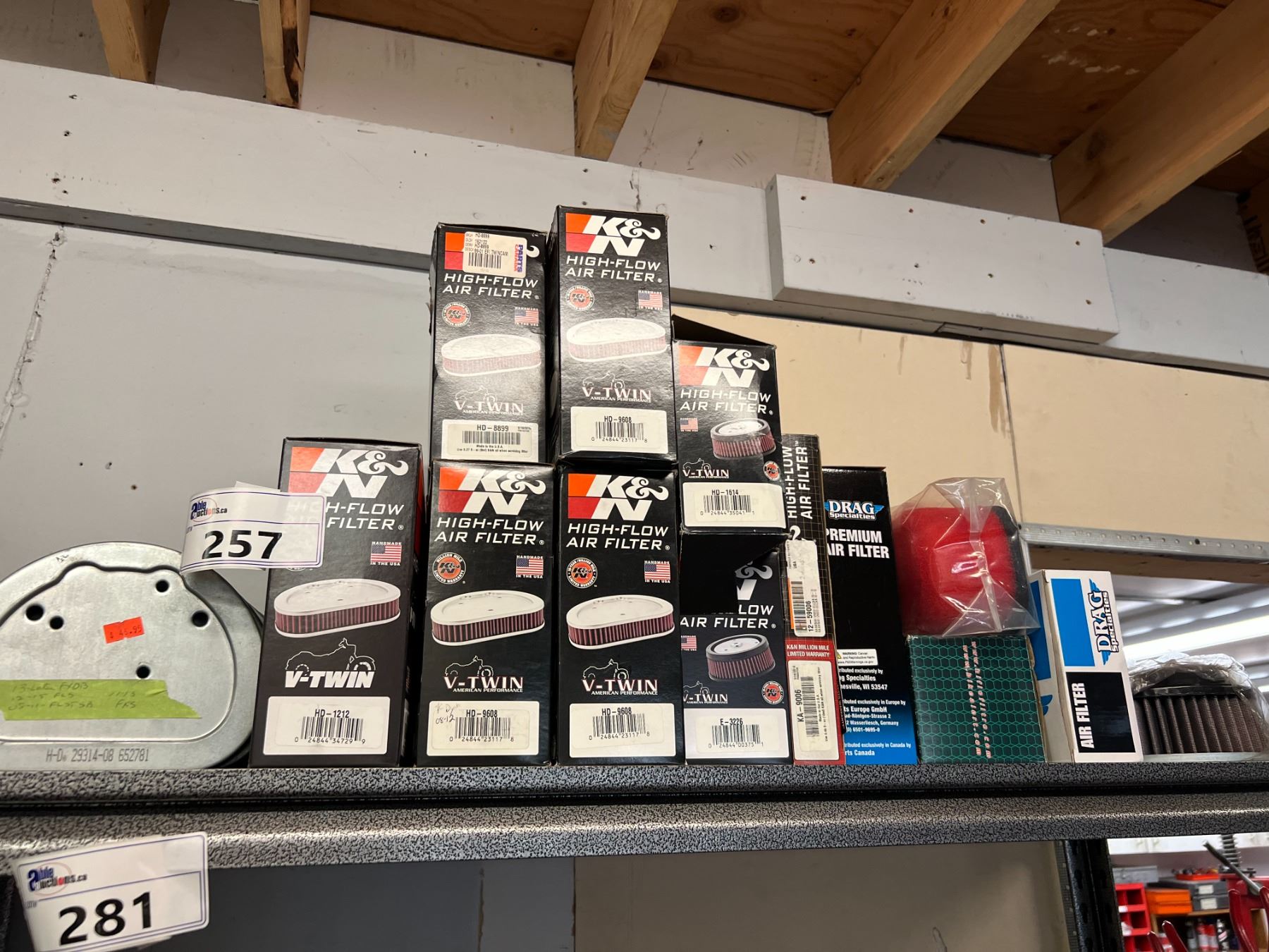 SHELF LOT OF K&N & OTHER AIR FILTERS (APPROX 20 PIECES)