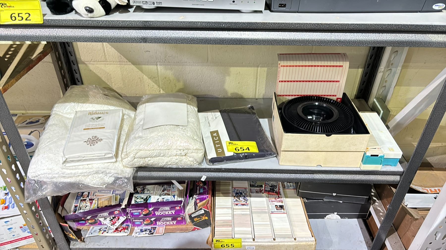 SHELF LOT OF KODAK PHOTO SLIDES, UTICA DOUBLE SIZE FLAT SHEET AND MORE