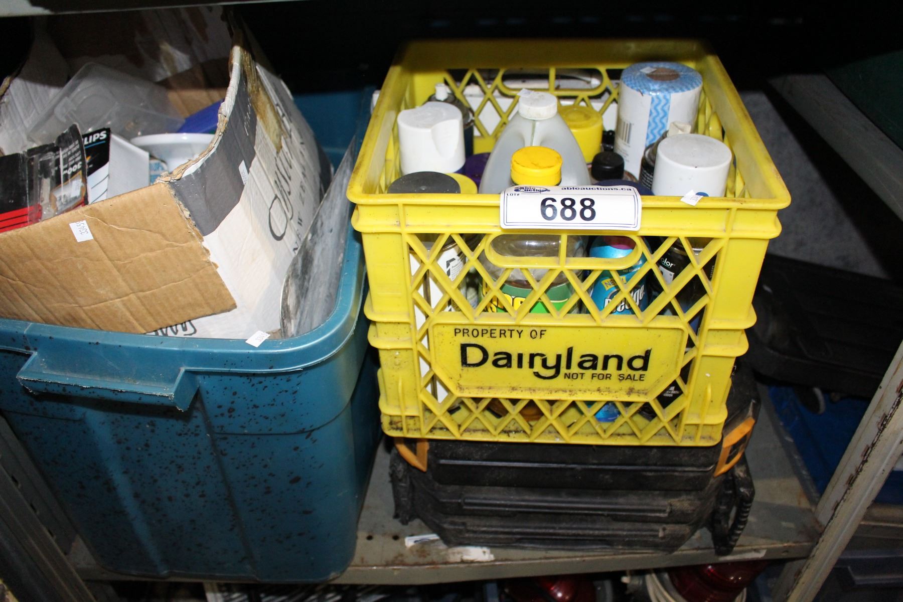 SHELF LOT OF LIGHTBULBS, HARDWARE, CLEANING SUPPLIES AND MORE