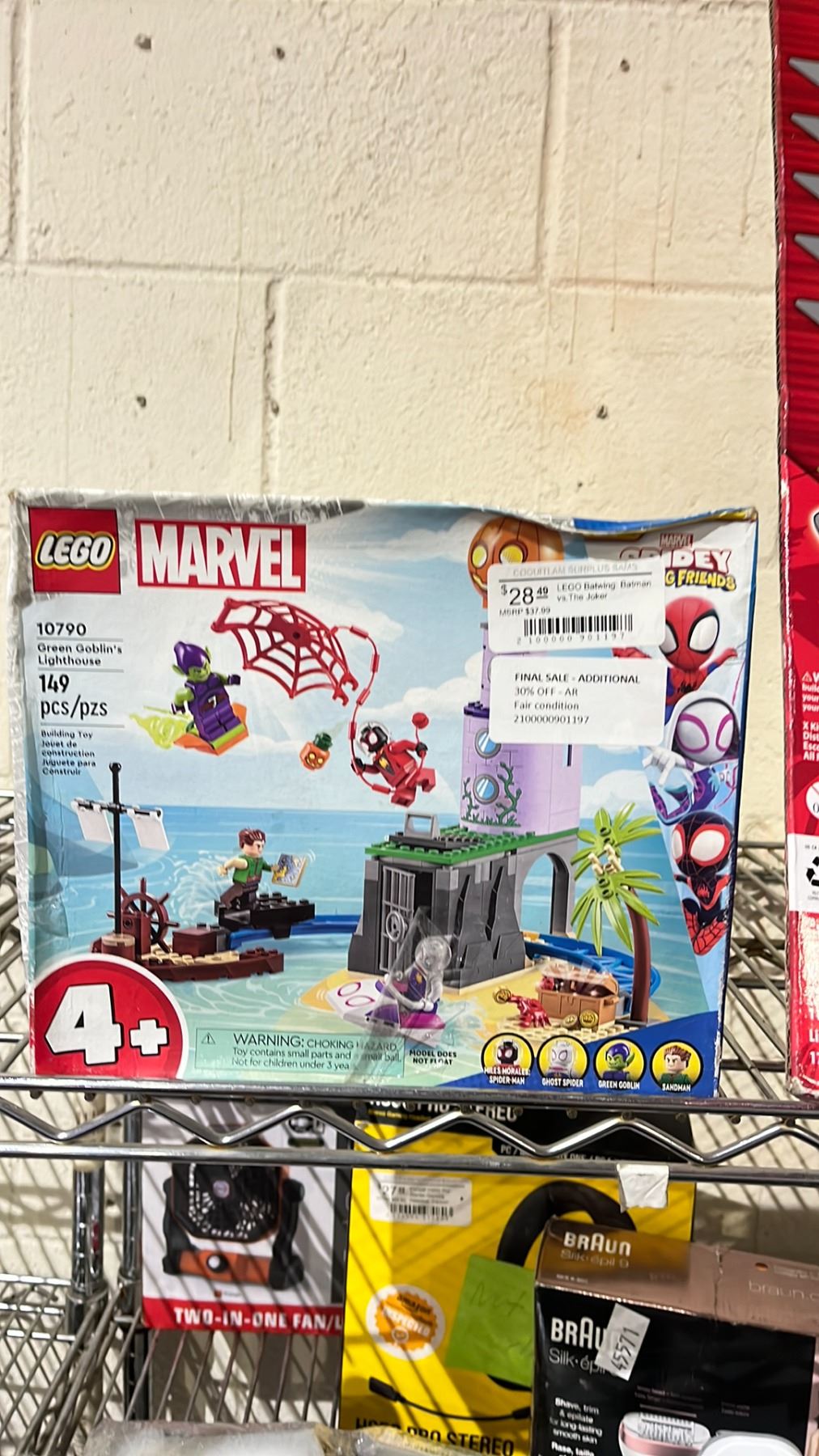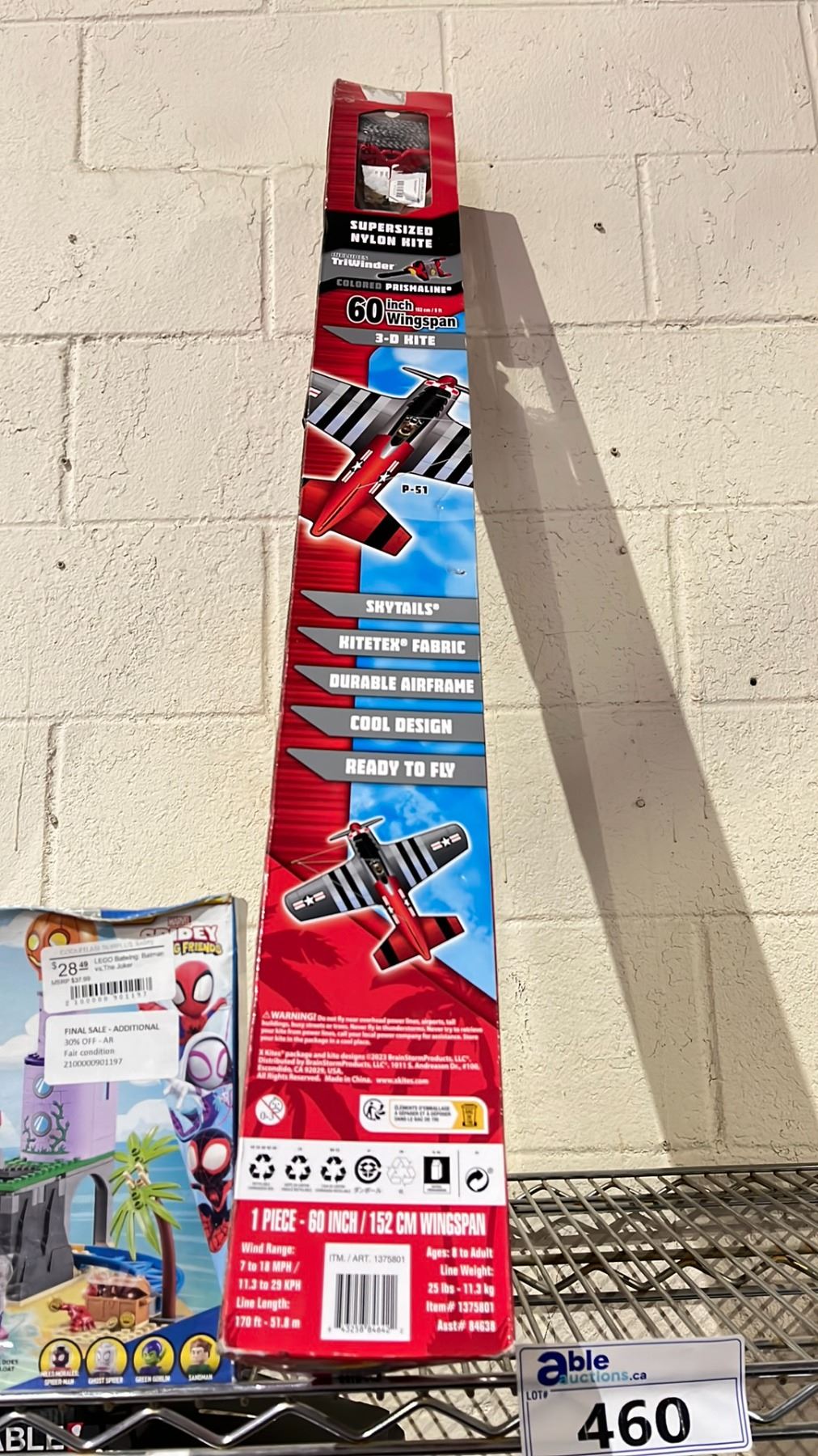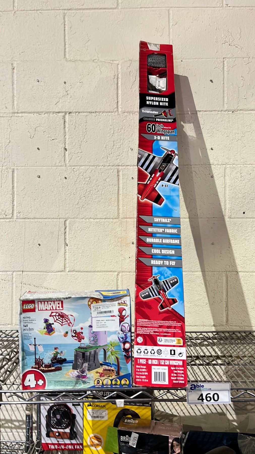 SHELF LOT OF MARVEL LEGO AND SUPER SIZED NYLON KITE 60" WINGSPAN