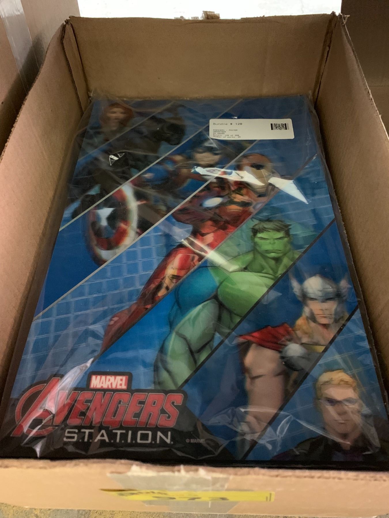 SHELF LOT OF MARVEL POSTERS AND MORE