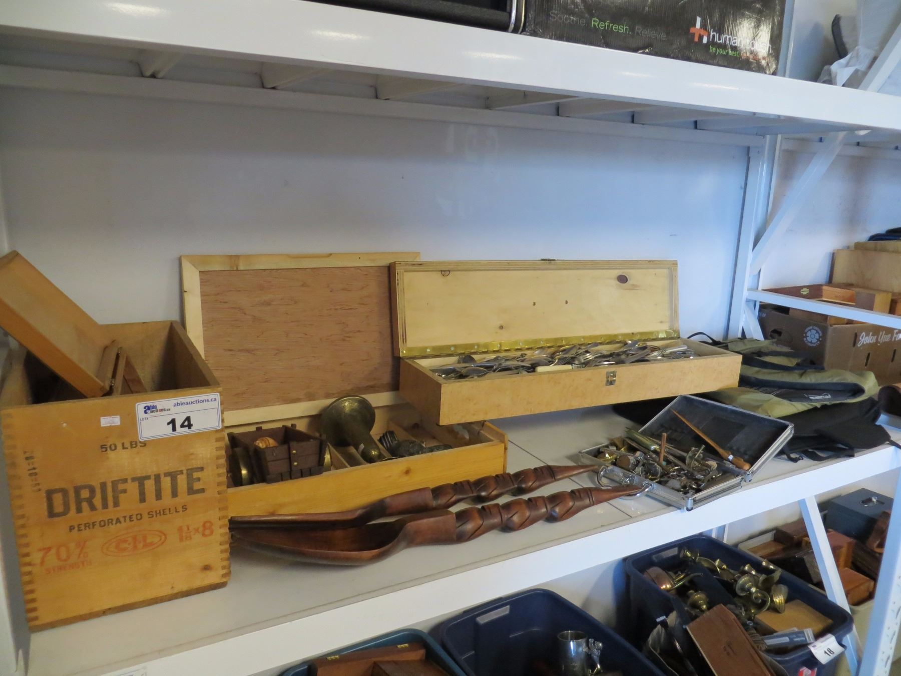 SHELF LOT OF MISC ESTATE GOODS (SILVERWARE, MISC)
