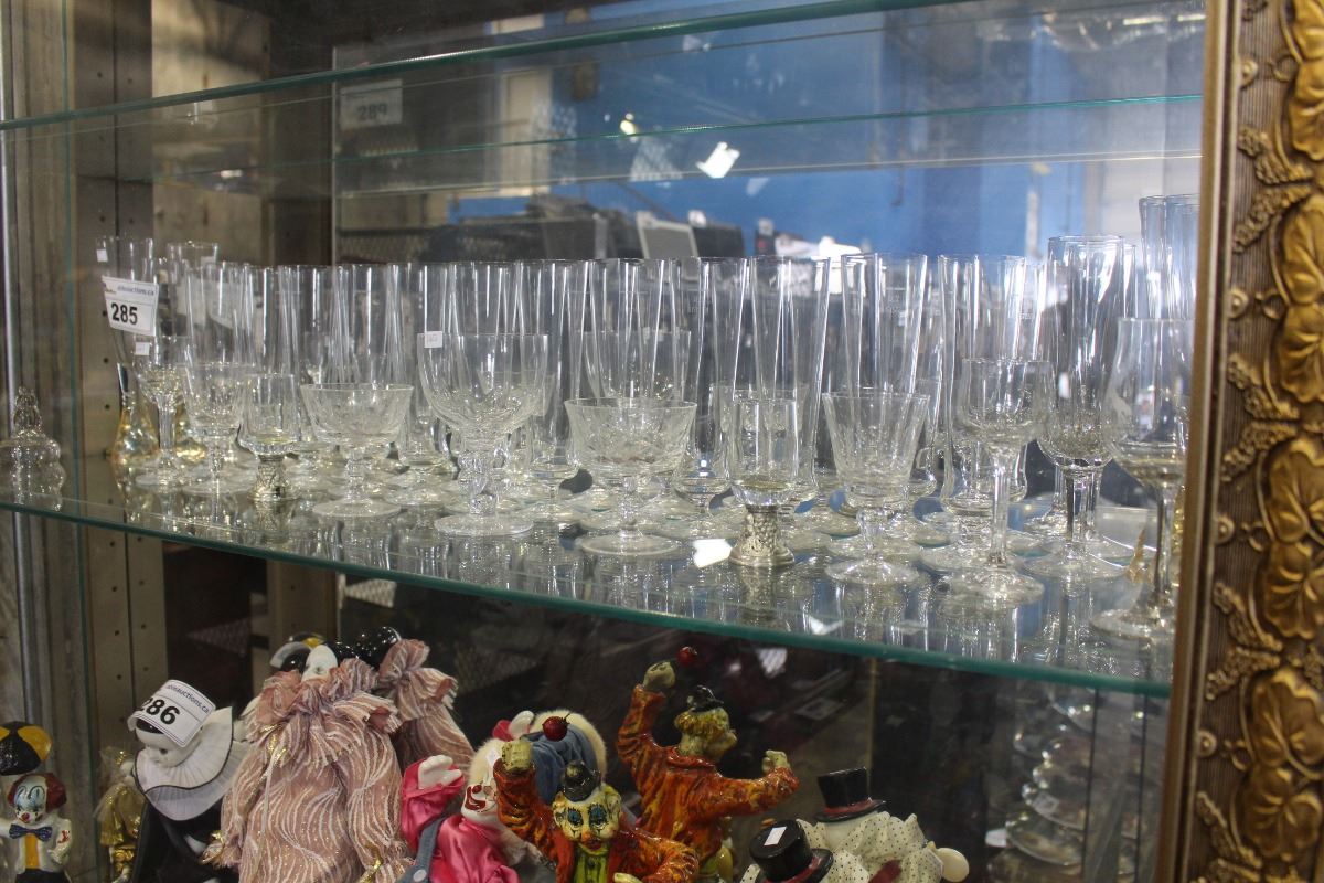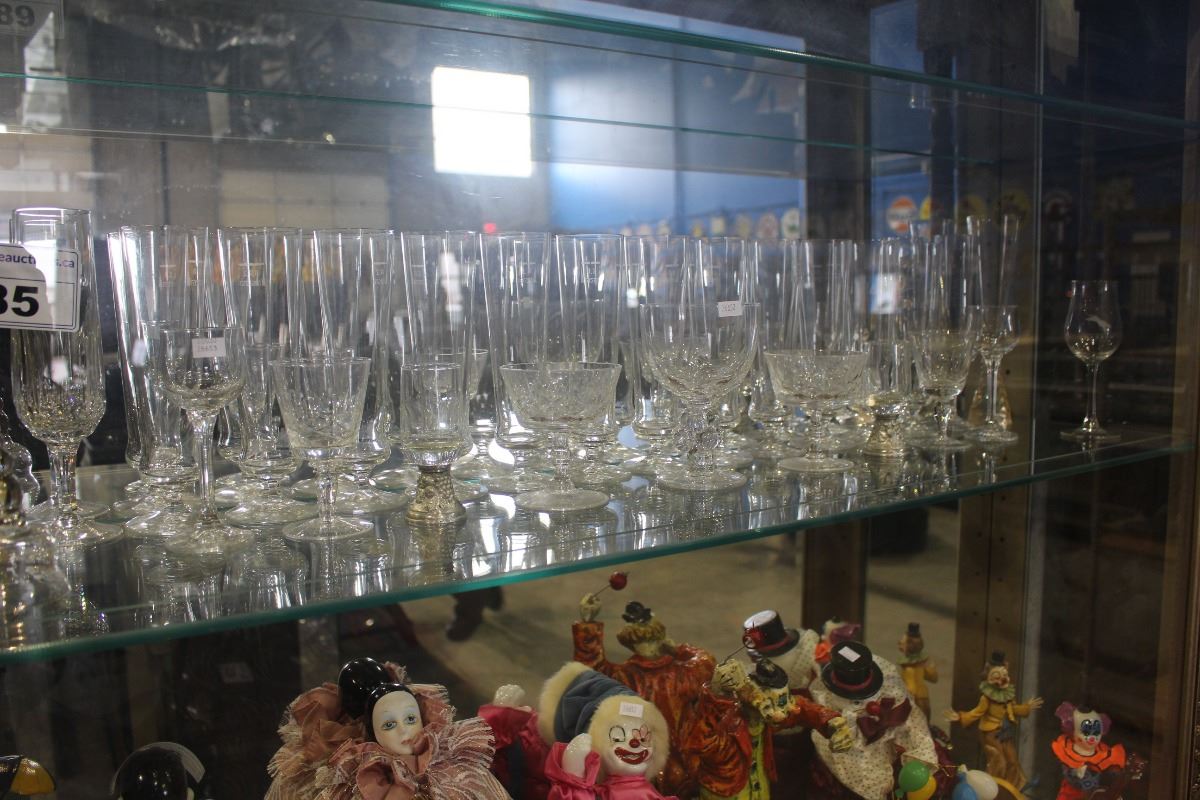 SHELF LOT OF MISC GLASS AND CRYSTAL WEAR