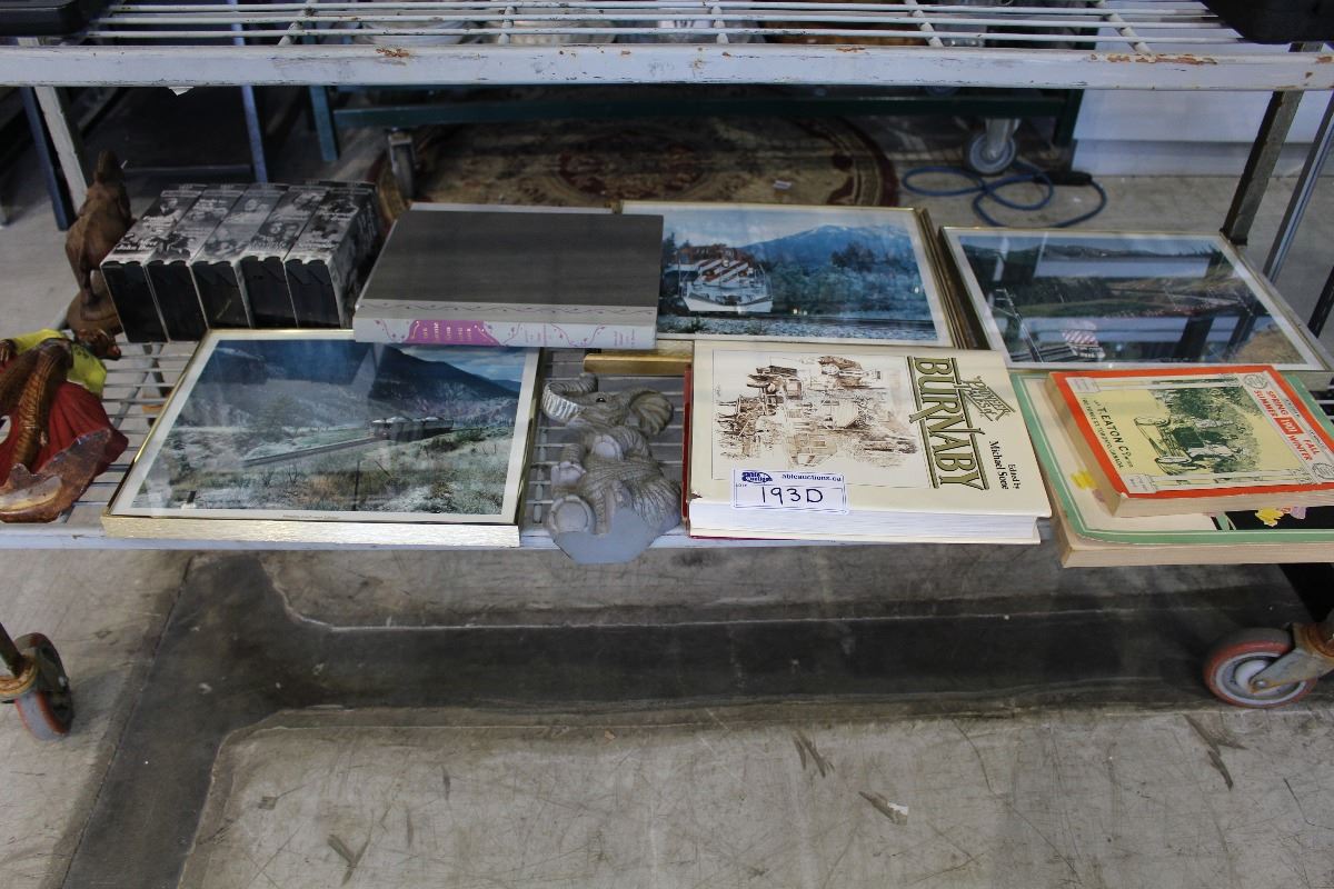 SHELF LOT OF MISC - INCLUDING CANADIAN BOOKS AND PHOTOGRAPHS