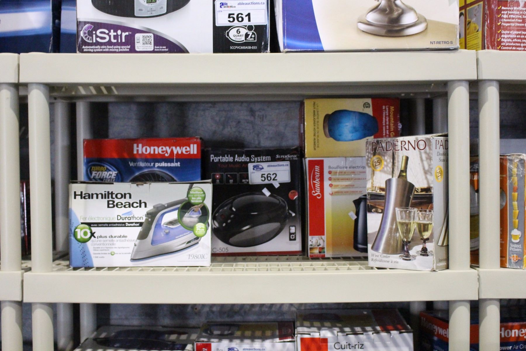SHELF LOT OF MISC. SMALL APPLIANCES