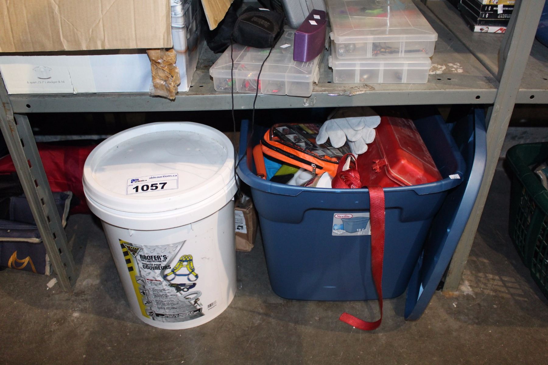 SHELF LOT OF MISC TOOLS AND GLOVES