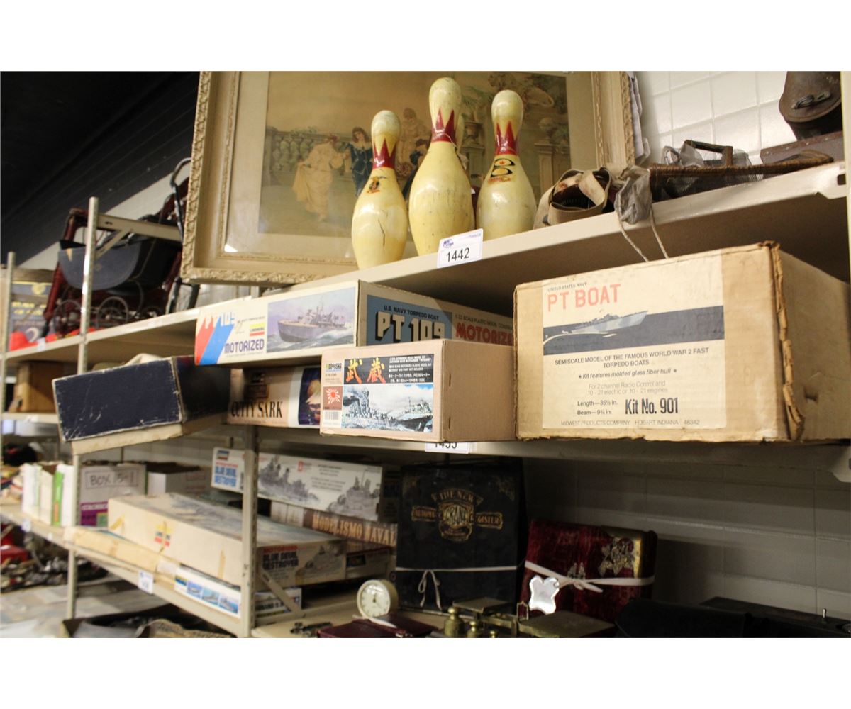 SHELF LOT OF MODEL BOATS IN BOXES