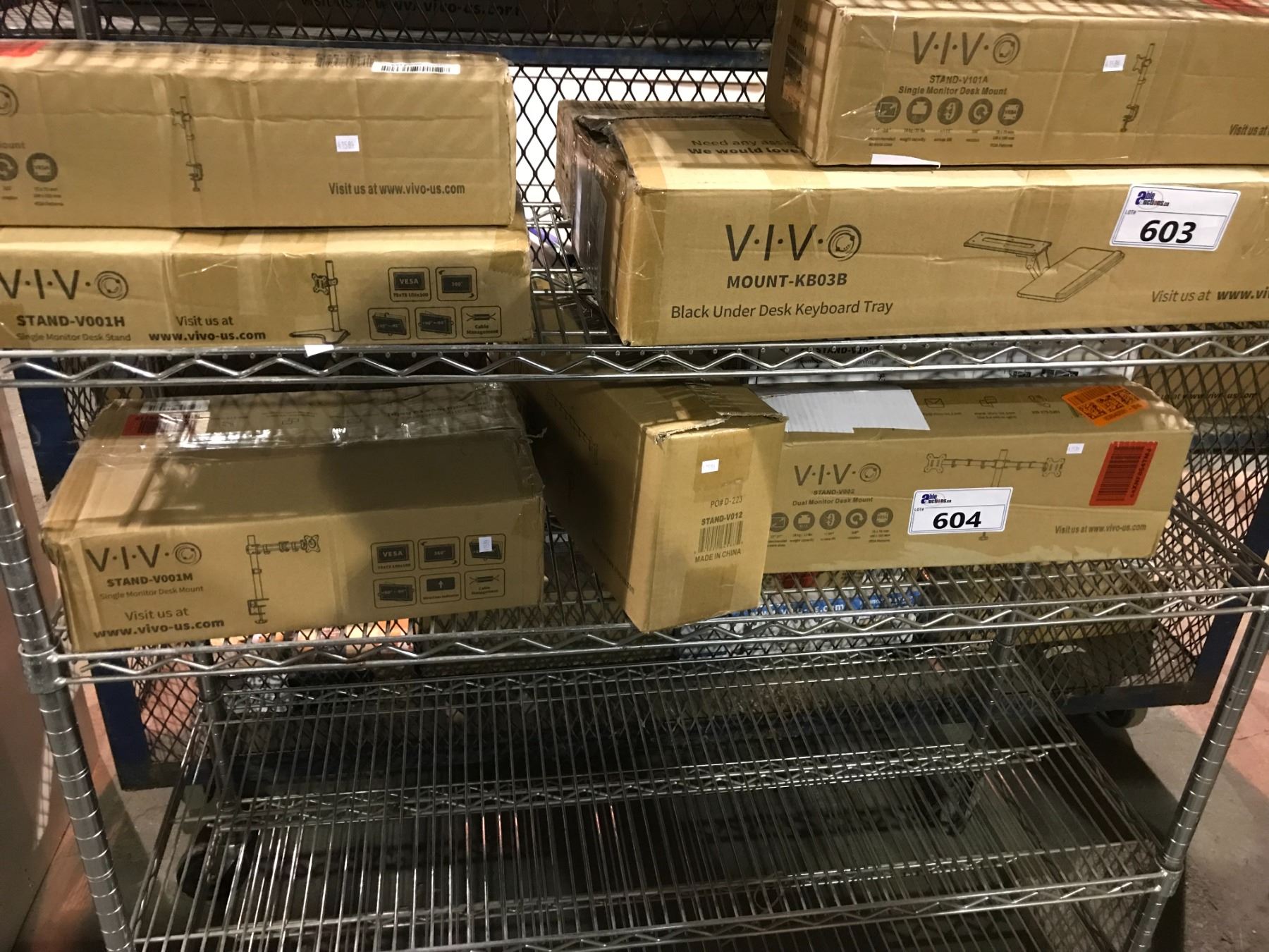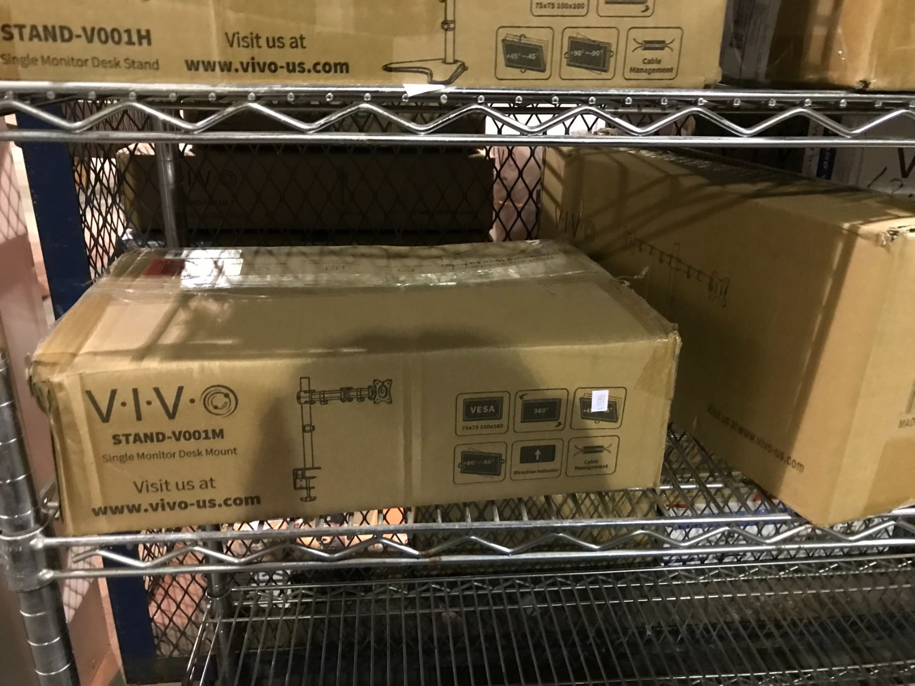 SHELF LOT OF MONITOR MOUNTS, MONITOR DESK MOUNTS AND MORE