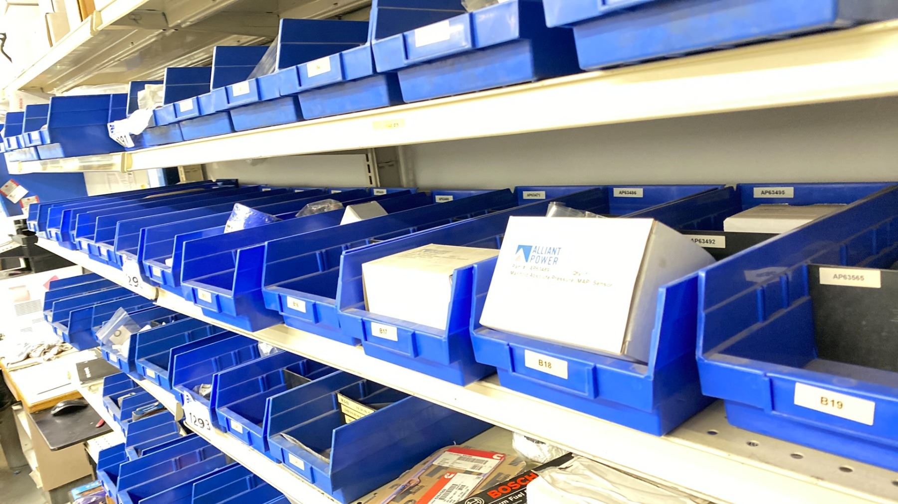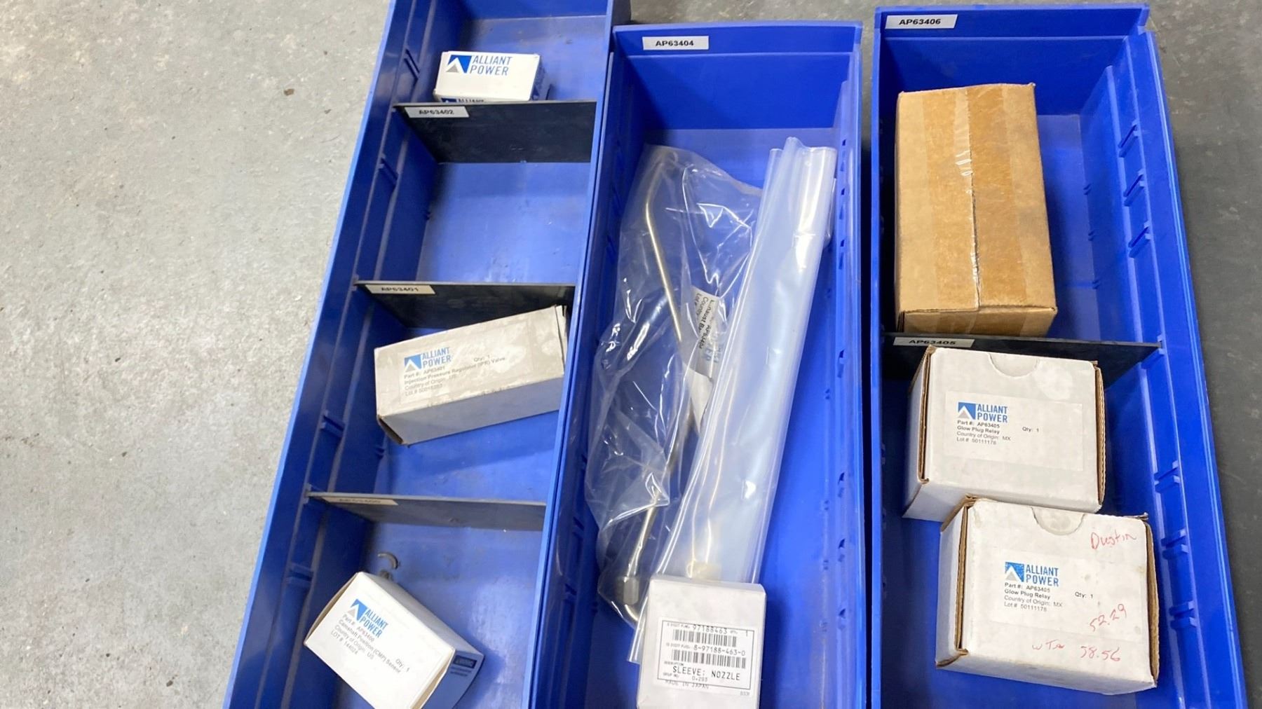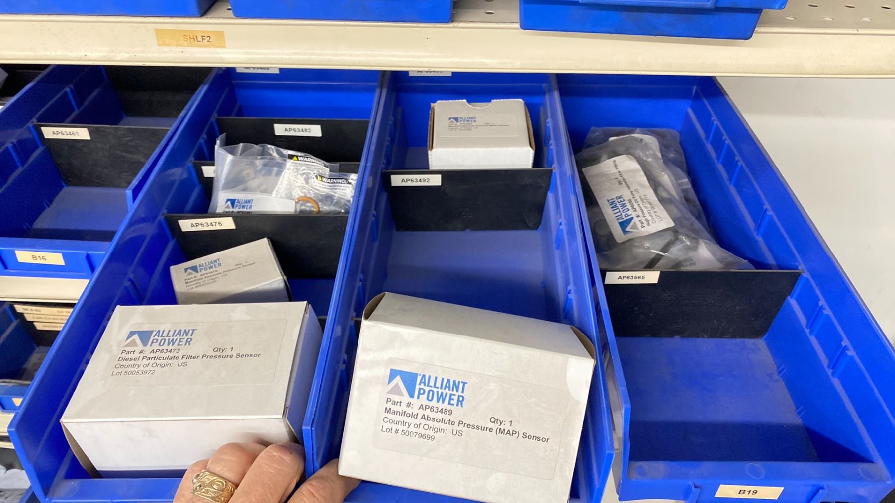 SHELF LOT OF MOSTLY ALLIANT POWER BRAND AUTOMOTIVE PARTS. INC GLOW PLUG RELAYS, OIL PRESSURE SENSORS, MANIFOLD ABSOLUTE PRESSURE SENSORS, ETC.