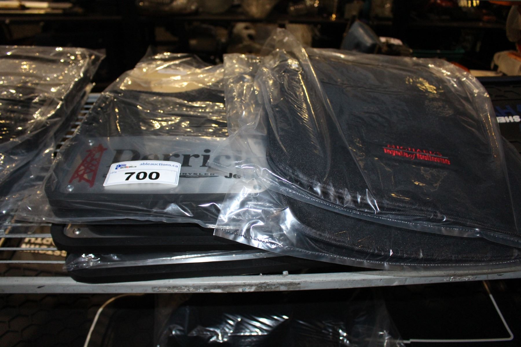 SHELF LOT OF MUD FLAPS AND CAR MATS