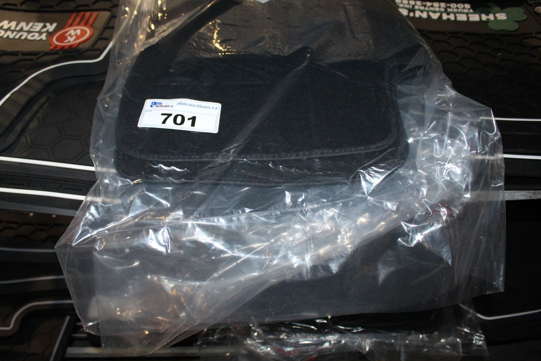 SHELF LOT OF MUD FLAPS AND CAR MATS