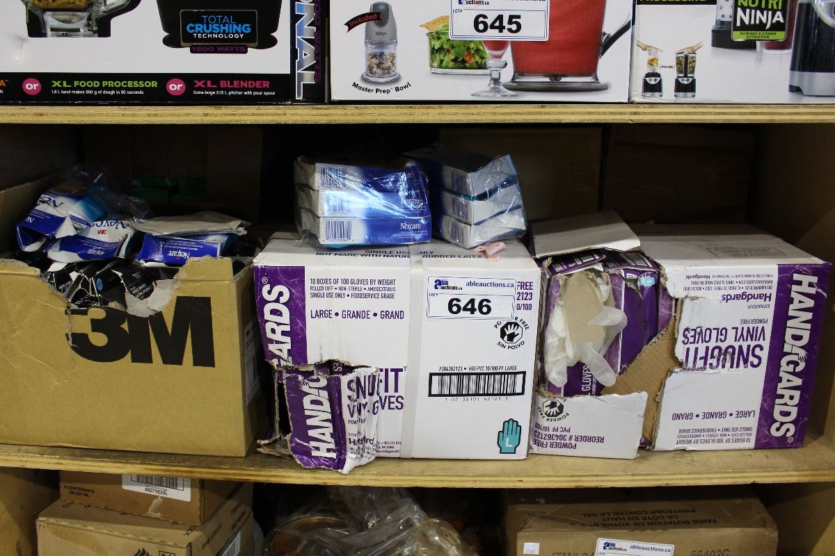 SHELF LOT OF NEW PRODUCTS INCLUDING LATEX GLOVES, TENSOR BANDAGES AND MORE