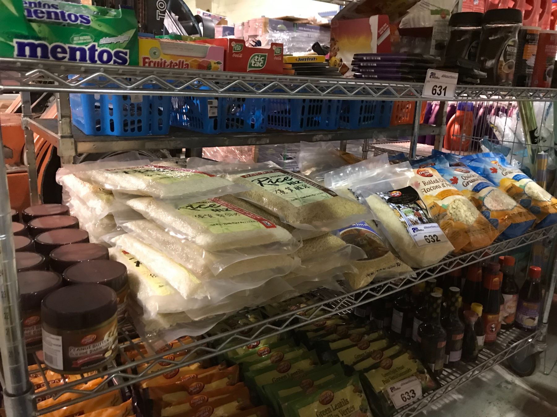 SHELF LOT OF NEW RICE, PEANUT BUTTER, OATS, AND MORE