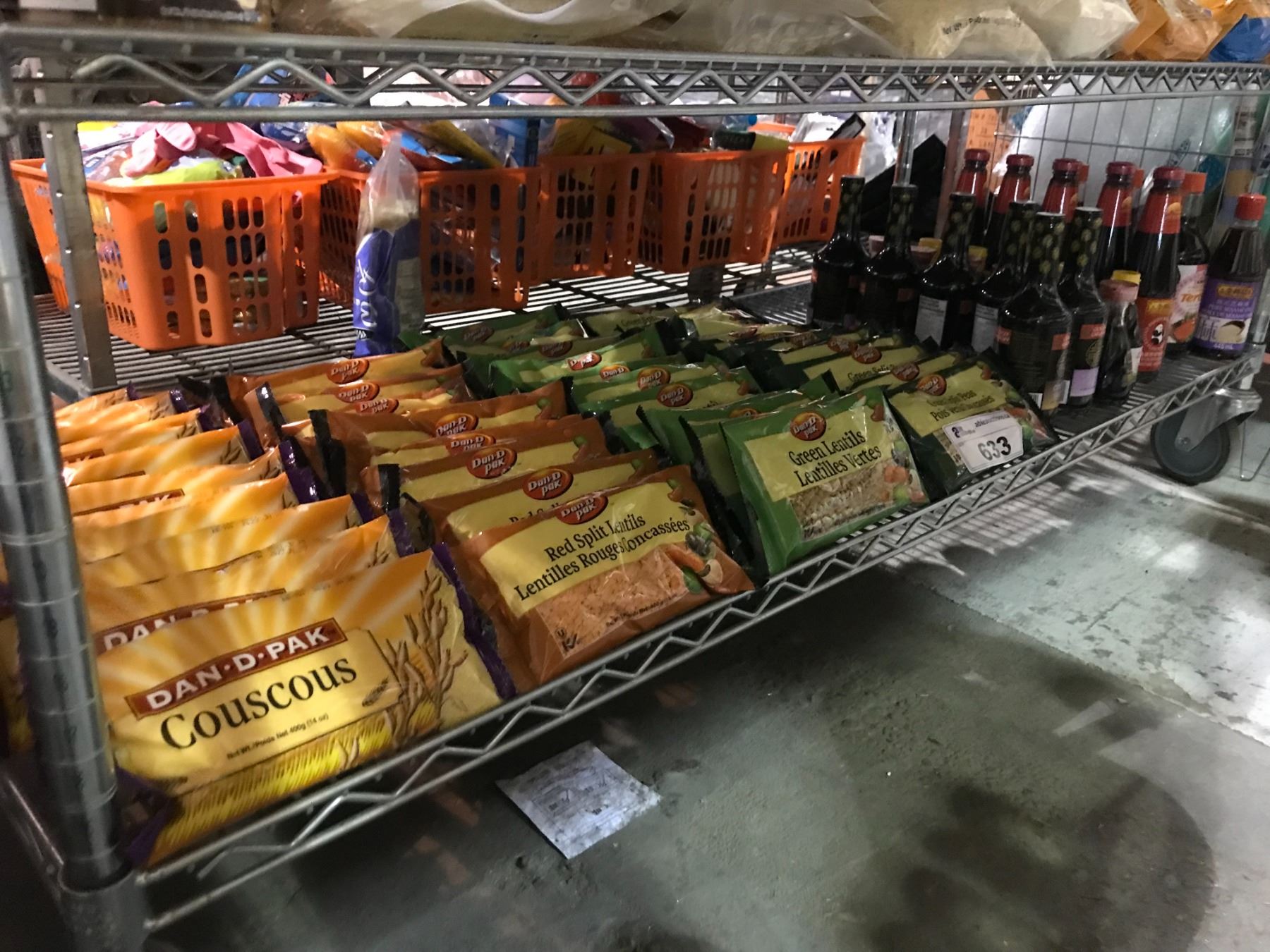 SHELF LOT OF NEW SPLIT PEAS, SAUCES, LENTILS, AND MORE