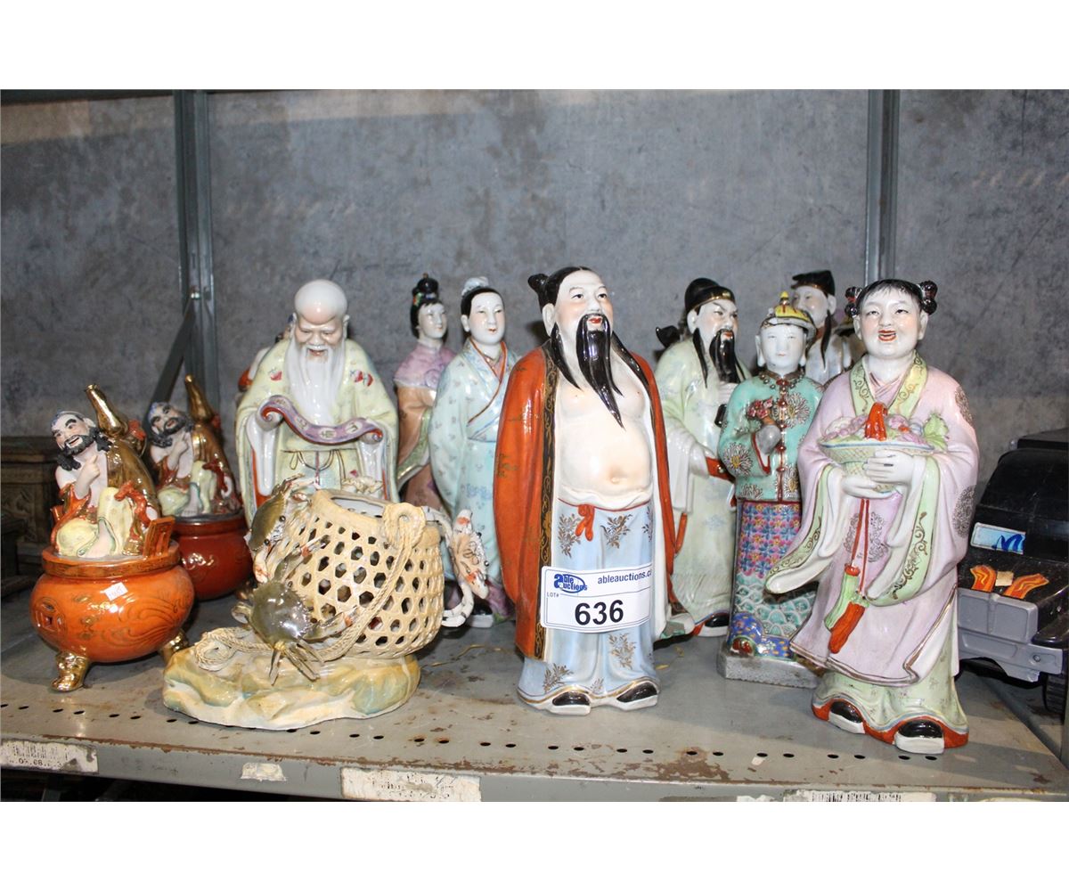 SHELF LOT OF ORIENTAL CERAMIC FIGURINES