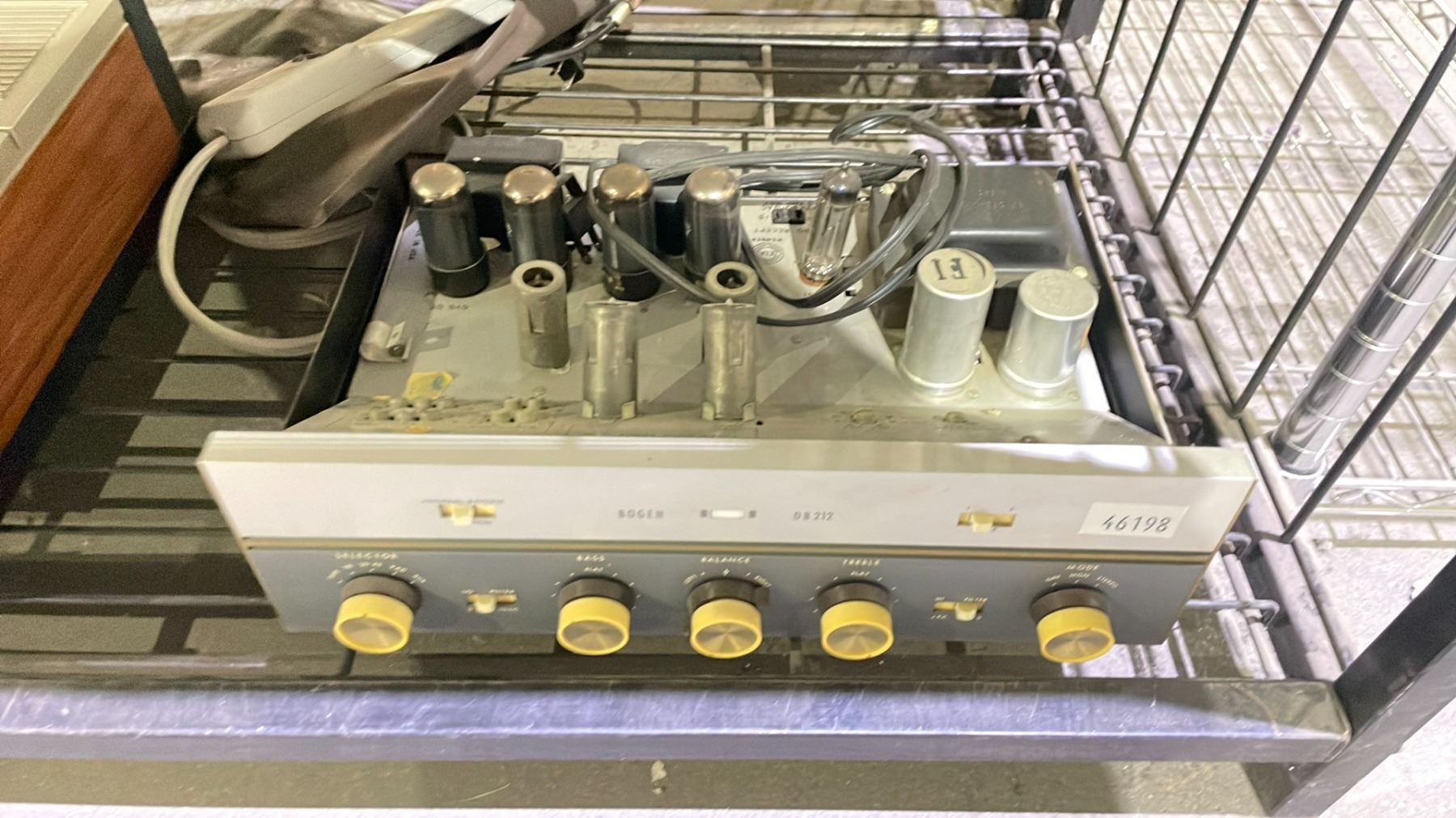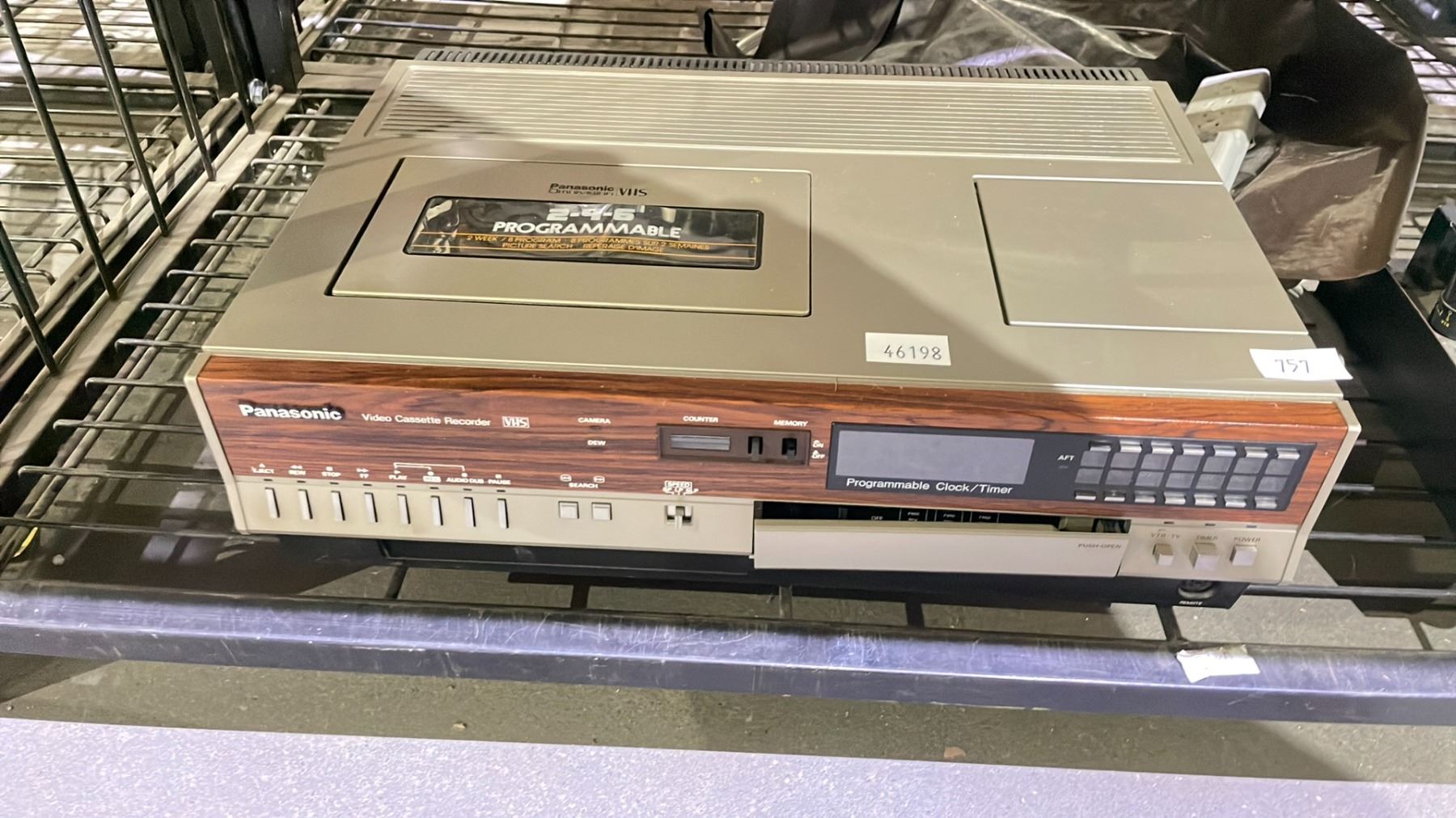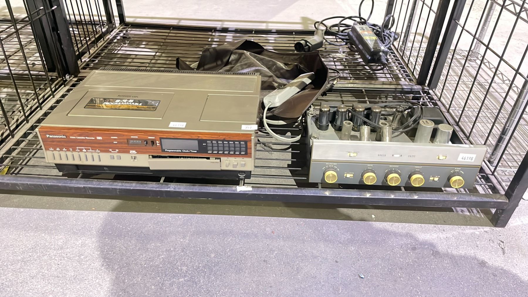 SHELF LOT OF PANASONIC VIDEO CASSETTE RECORDER AND BOGEN DB 2212