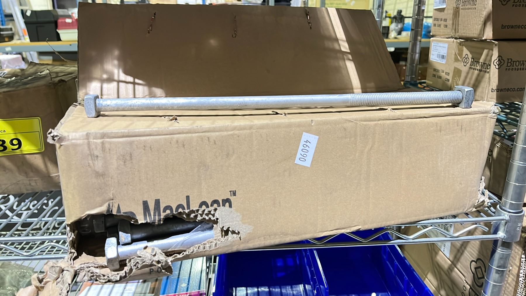 SHELF LOT OF PIPE CLAMPS AND MCLEAN POWER SYSTEMS BOLT MACH 5/8X18"