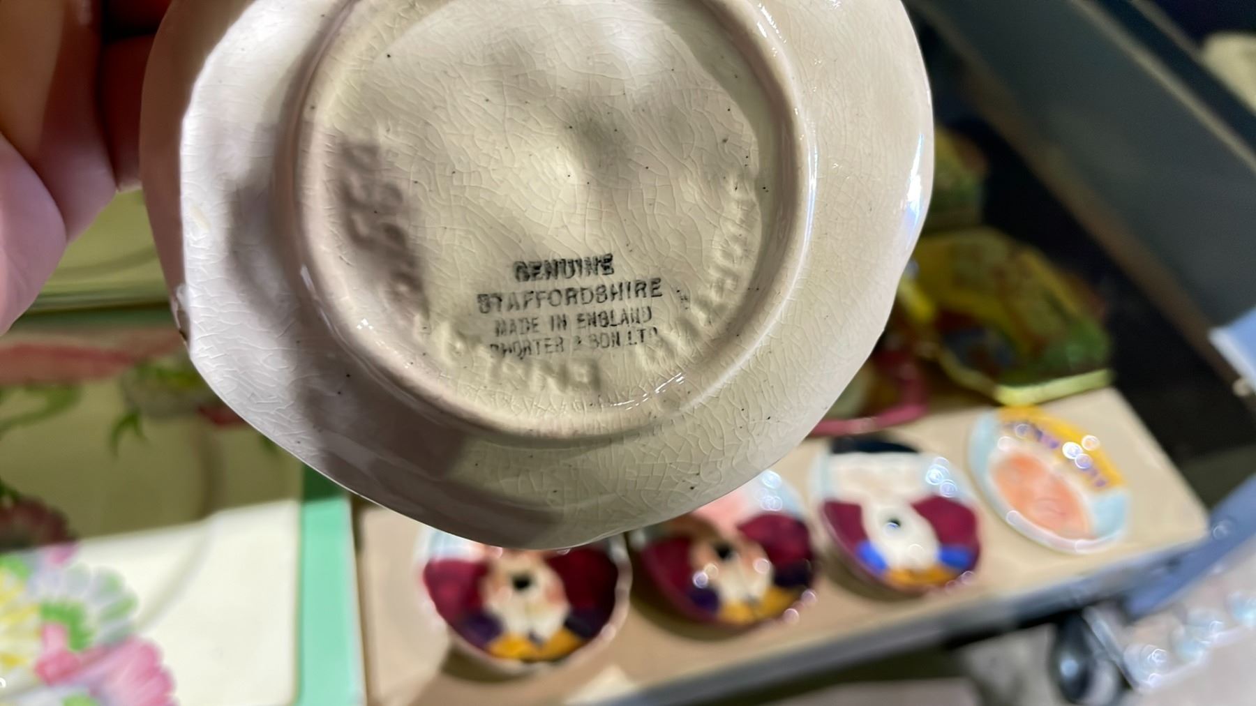 SHELF LOT OF RADFORD PLATES, STAFFORDSHIRE PLATES AND MORE