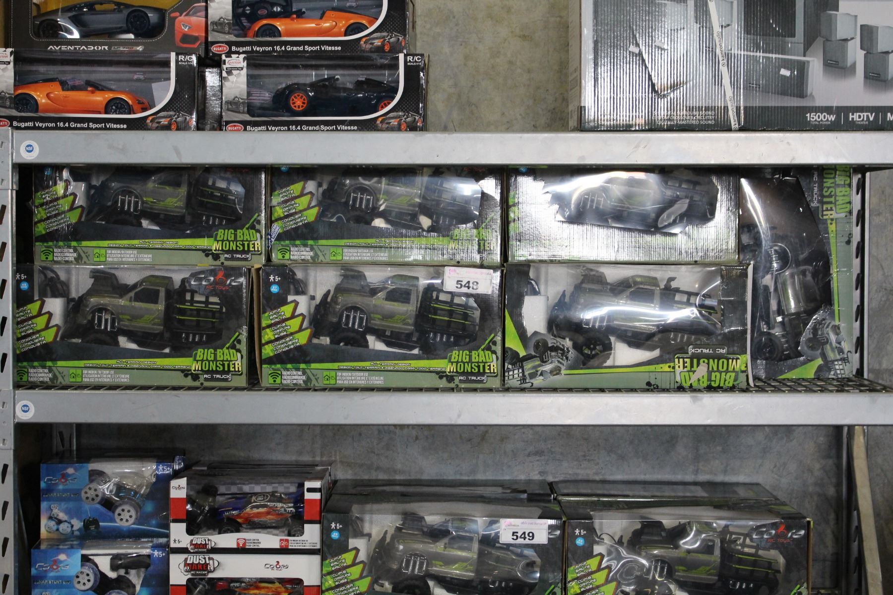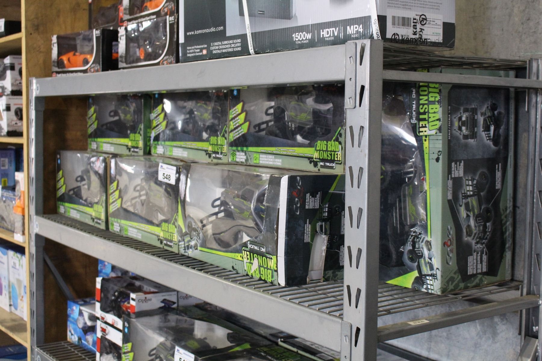 SHELF LOT OF RADIO CONTROLLED MONSTER TRUCKS