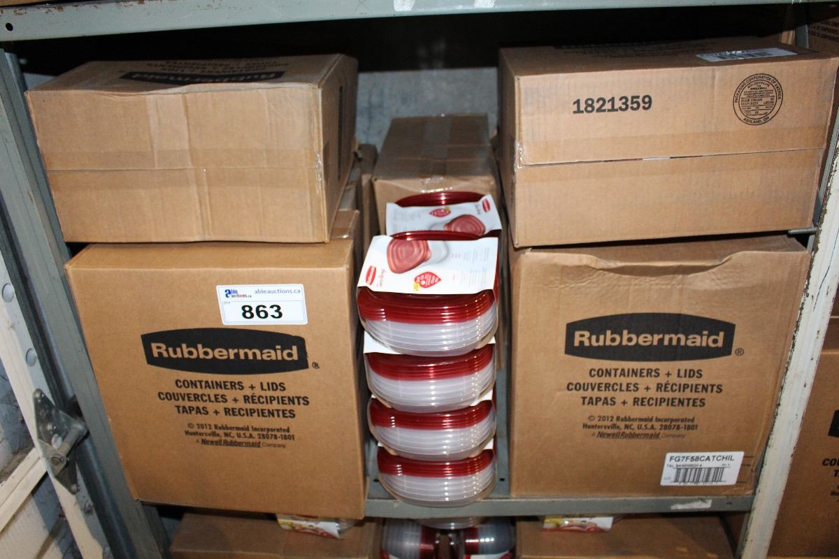 SHELF LOT OF RUBBERMAID PLASTIC CONTAINERS