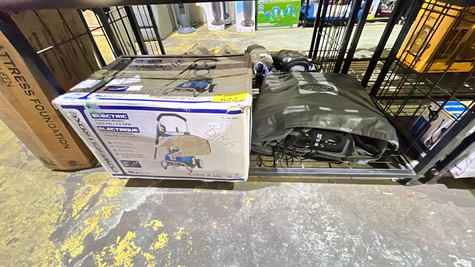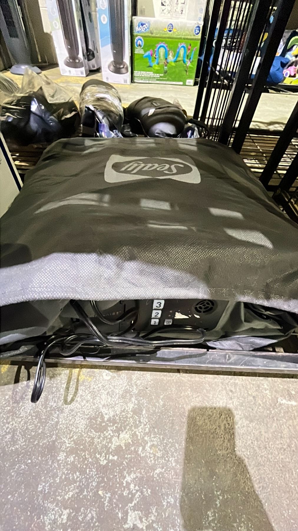 SHELF LOT OF SEALY INFLATABLE MATTRESS AND POWERSTROKE ELECTRIC PRESSURE WASHER 1900PSI *UNKNOWN WORKING CONDITION/ MAY BE MISSING PIECES*