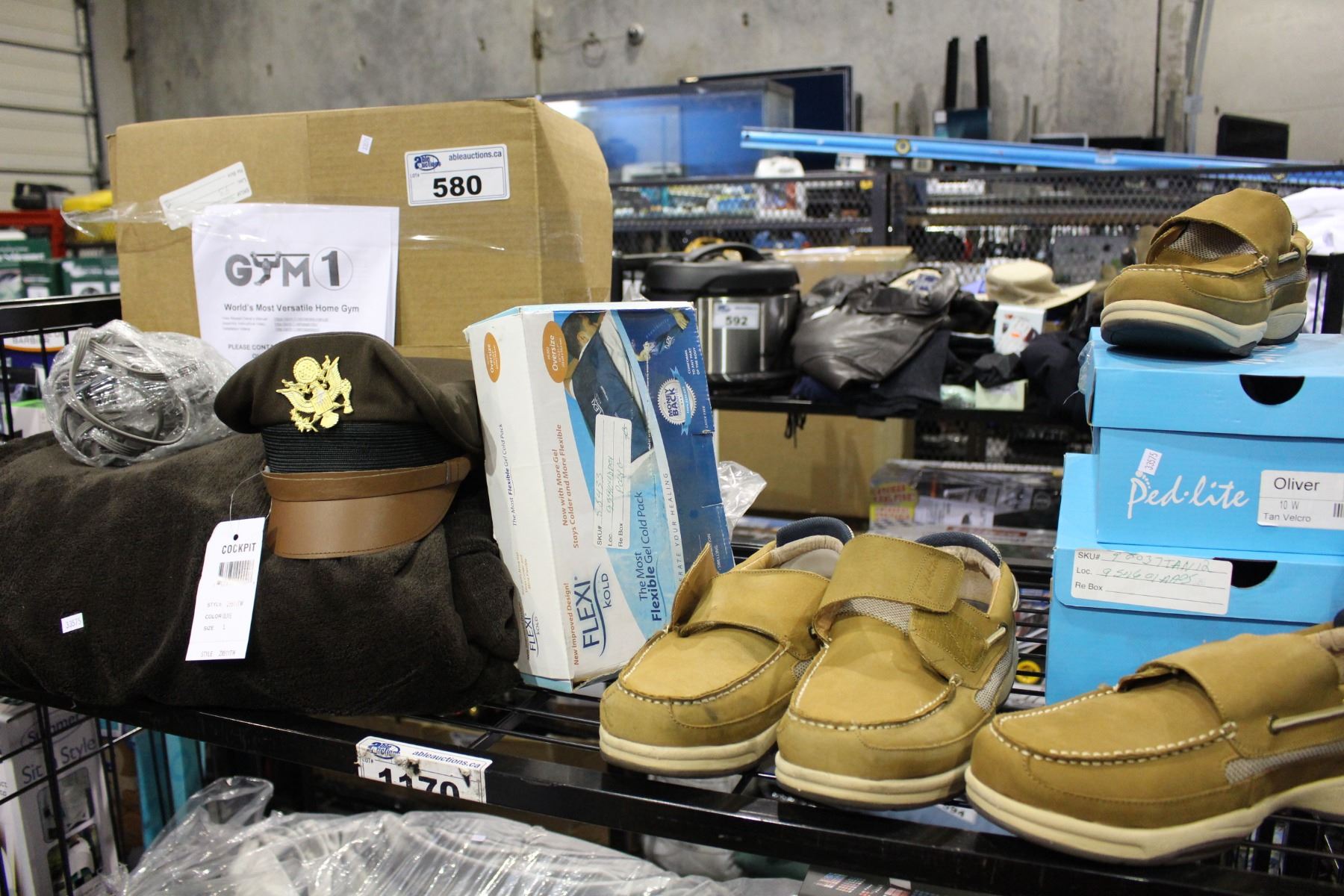 SHELF LOT OF SHOES, VERSATILE HOME GYM, HEATED BLANKET AND MORE