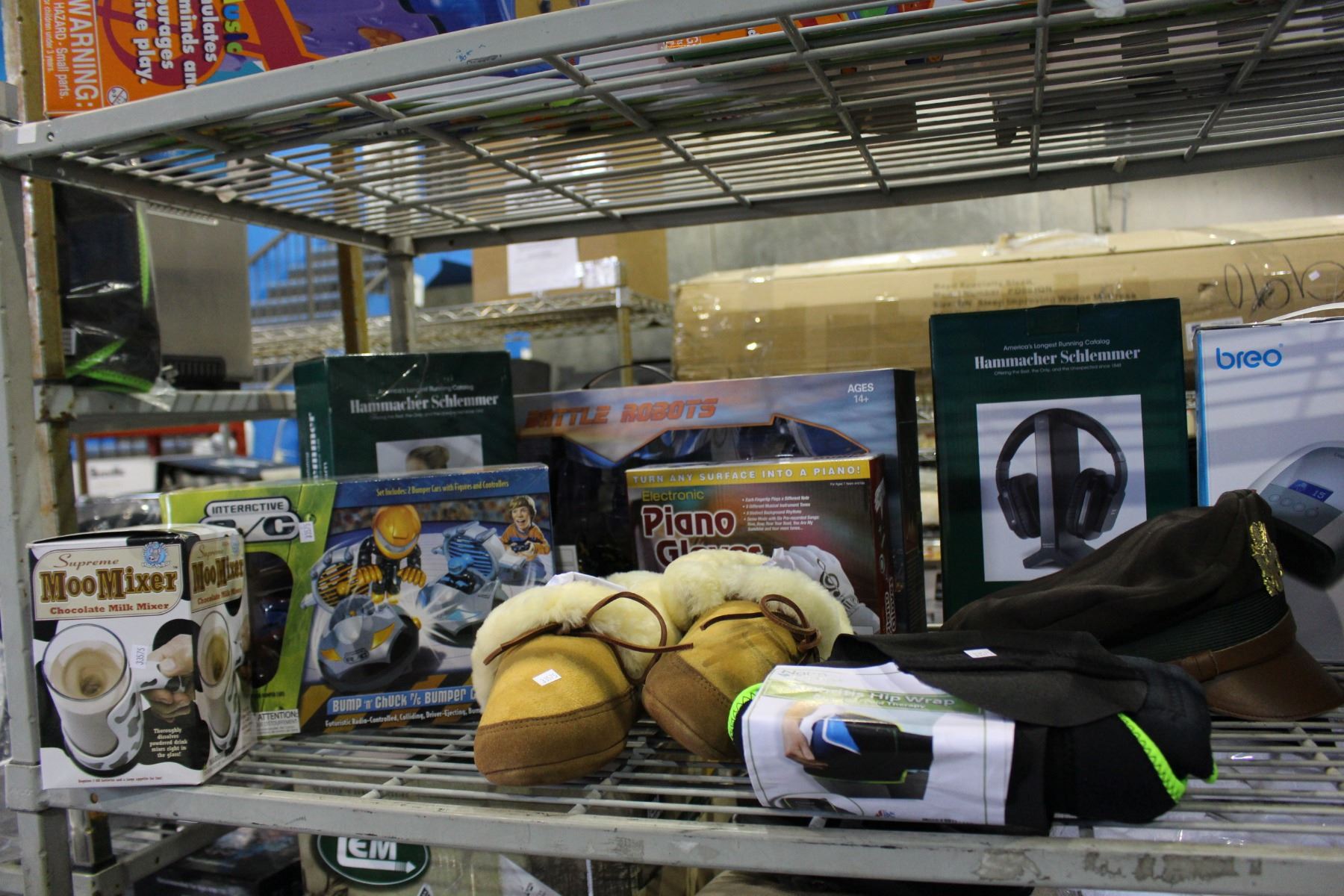SHELF LOT OF SLIPPERS, BEER STEINS AND MORE