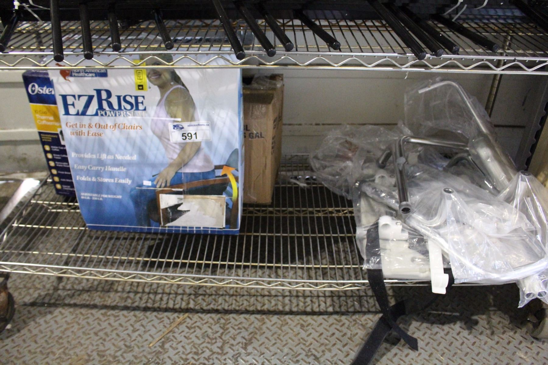 SHELF LOT OF SMALL APPLIANCES AND MORE