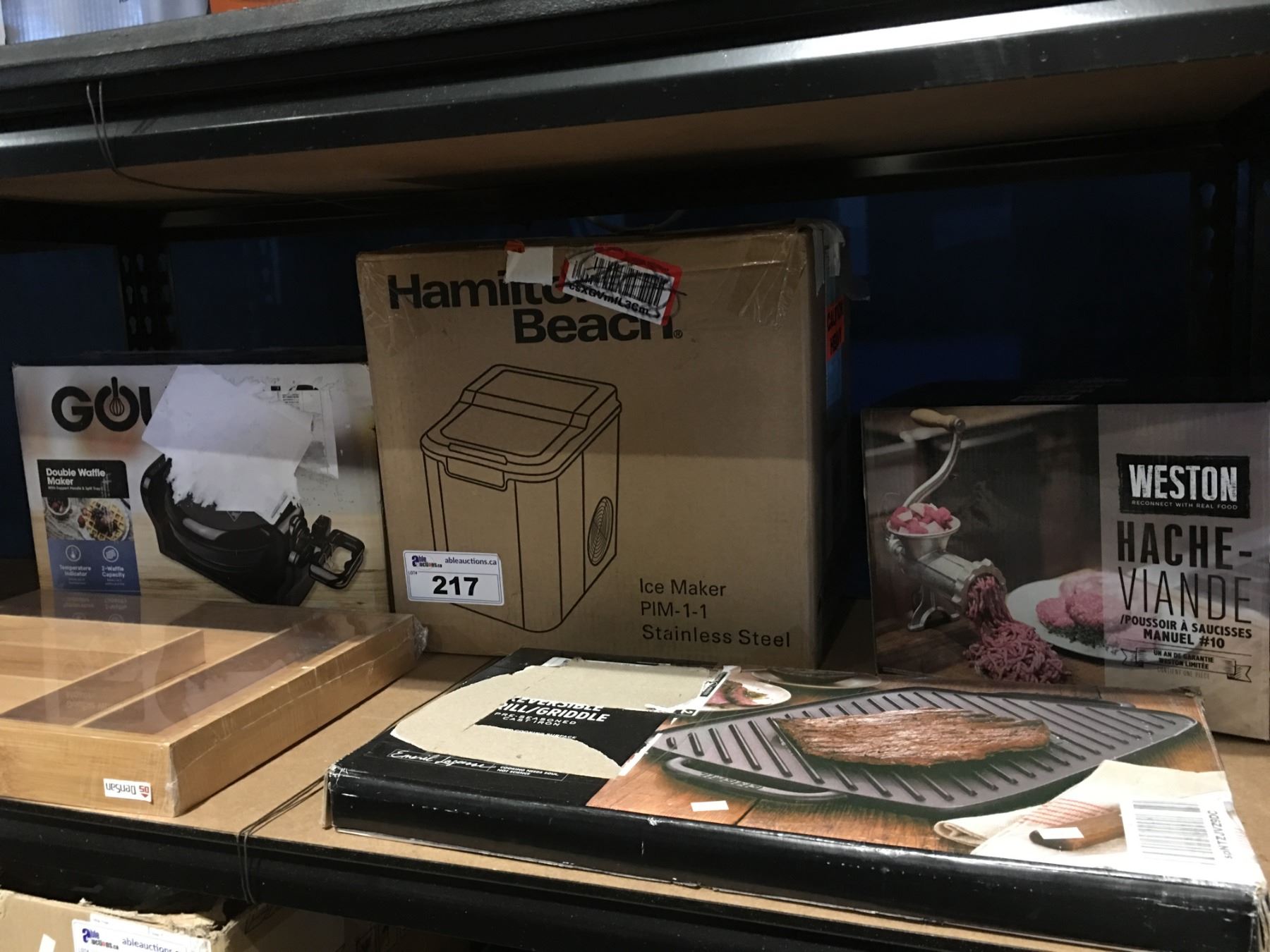 SHELF LOT OF SMALL KITCHEN APPLIANCES & ASSORTED KITCHENWARES