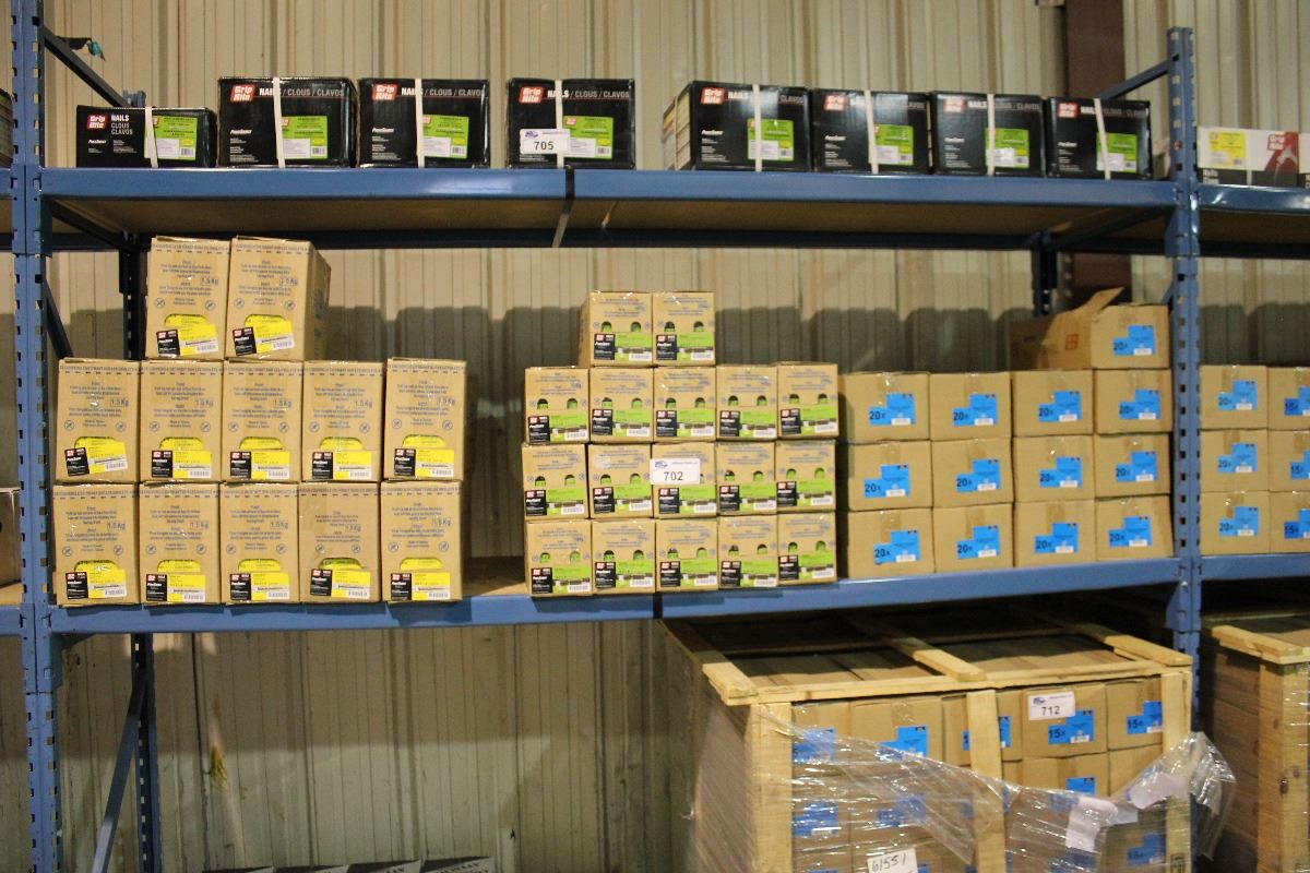 SHELF LOT OF SPIRAL NAILS (12D 3-1/4"), LOCK WASHER (5/16") & BOX NAILS (7D 2-1/4")