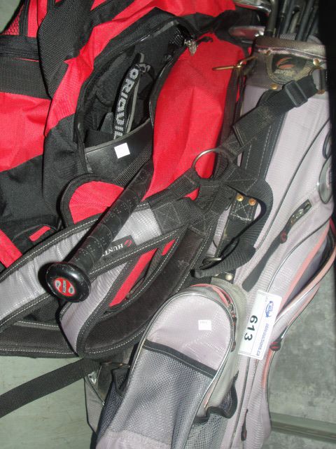SHELF LOT OF SPORTING EQUIPMENT; GOLF CLUB WITH BAG, BASEBALL EQUIPMENT, ETC