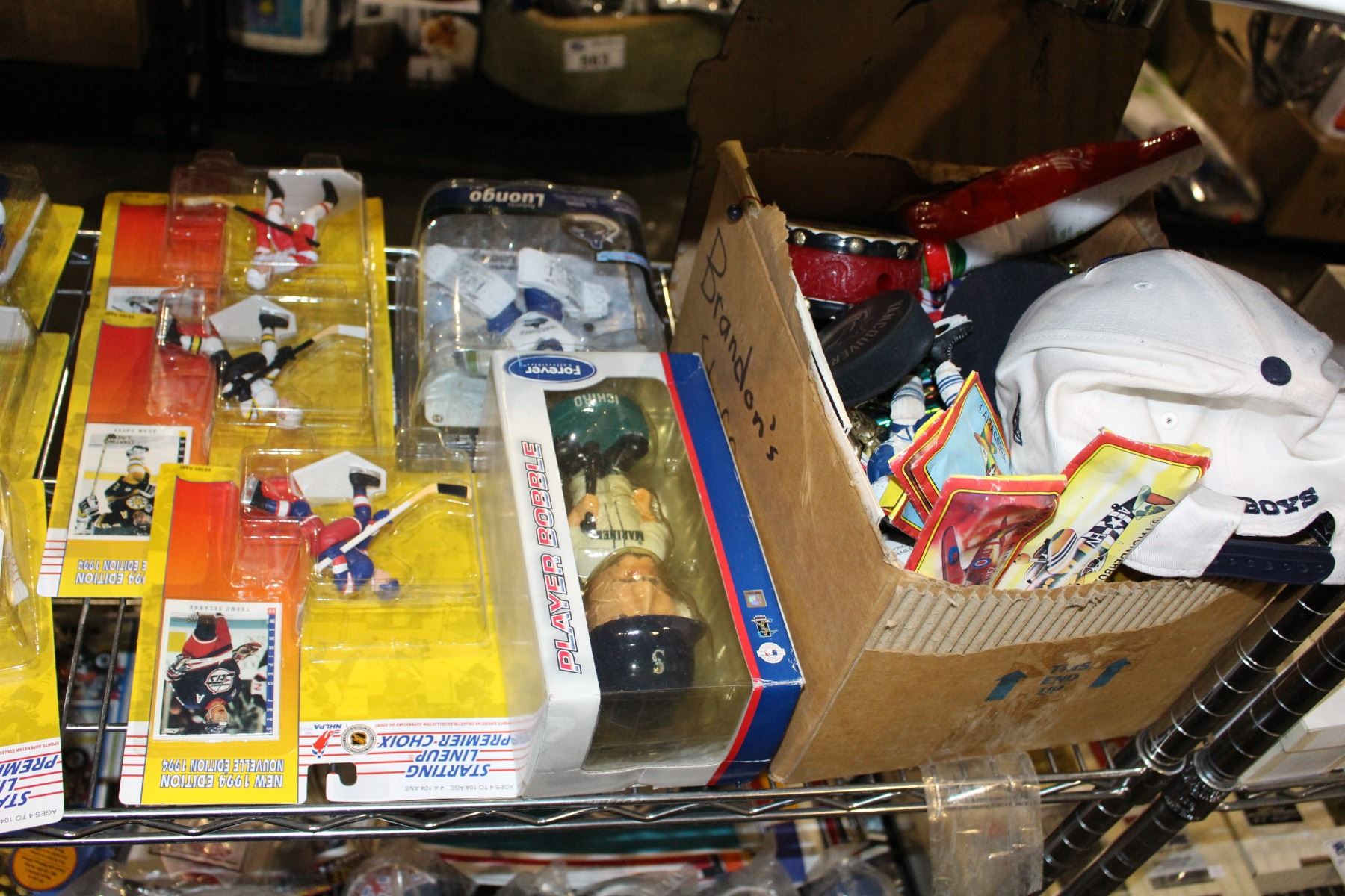 SHELF LOT OF SPORTS COLLECTABLES