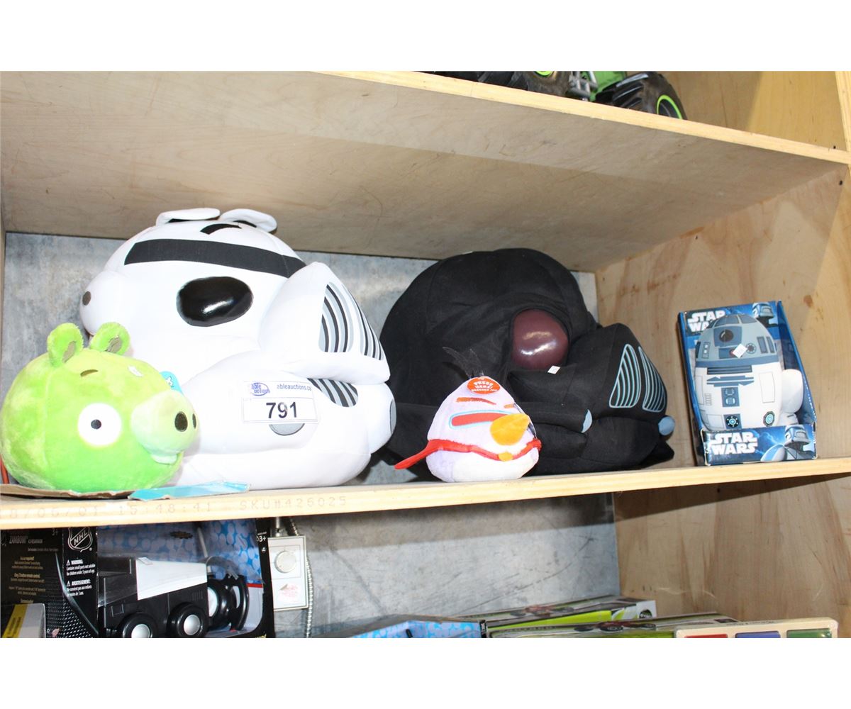 SHELF LOT OF STAR WARS ANGRY BIRD COLLECTABLES