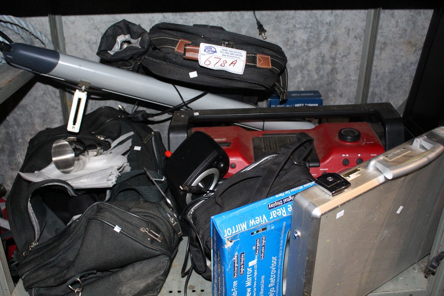 SHELF LOT OF STEREO EQUIPMENT AND ELECTRONICS