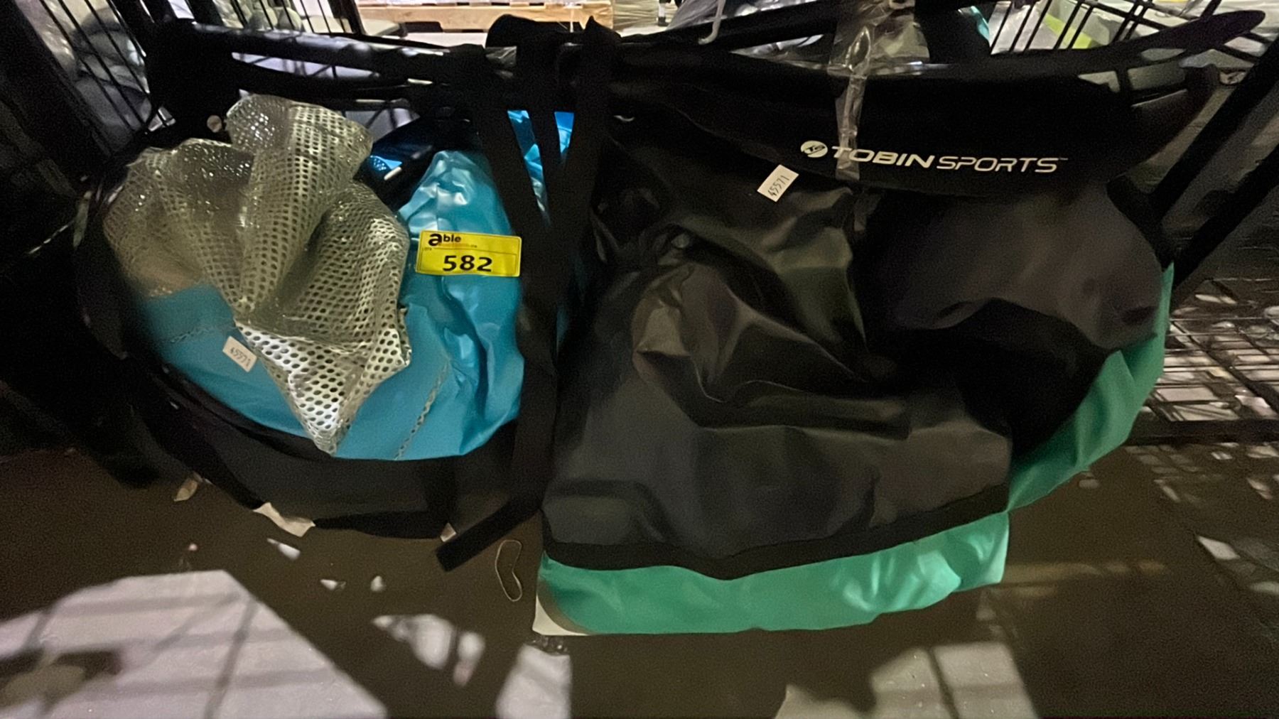 SHELF LOT OF TOBIN SPORTS INFLATABLES *UNKNOWN WORKING CONDITION/ MAY BE MISSING PIECES*