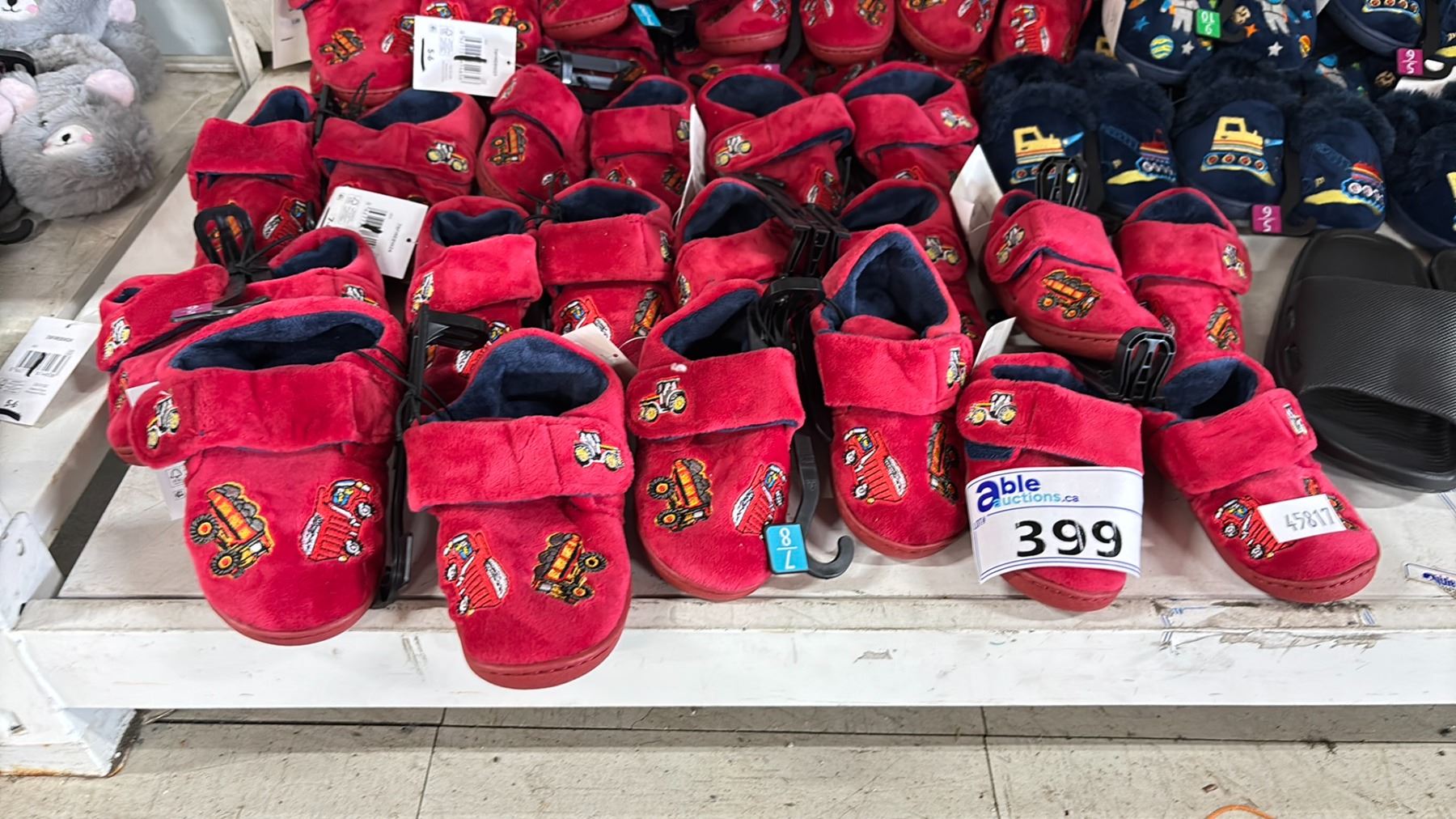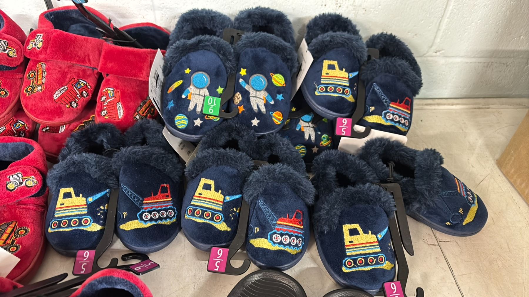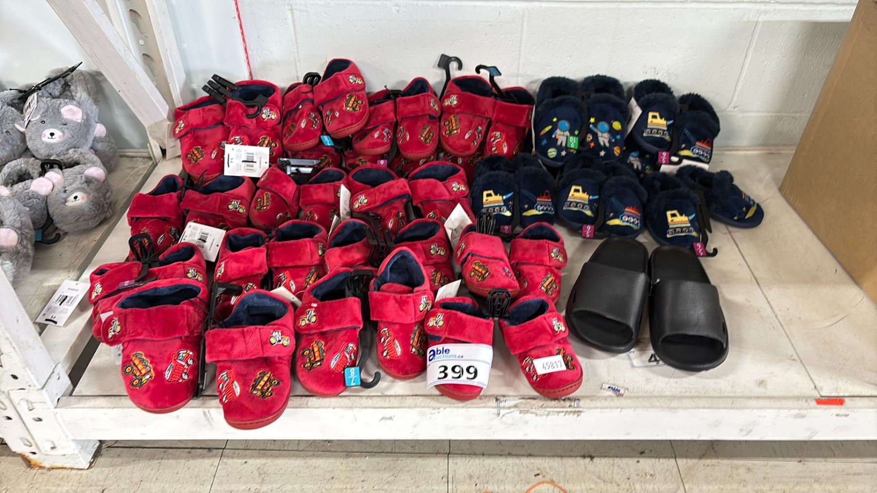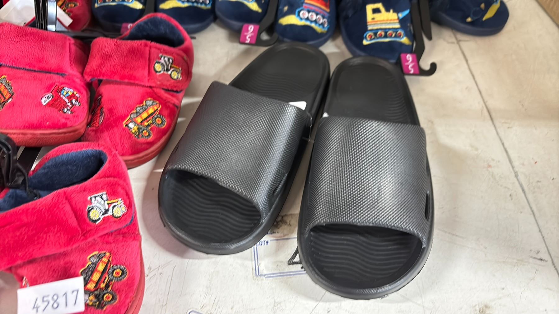 SHELF LOT OF TODDLER SLIPPERS ASSORTED SIZES & PAIR OF SANDALS SIZE SMALL
