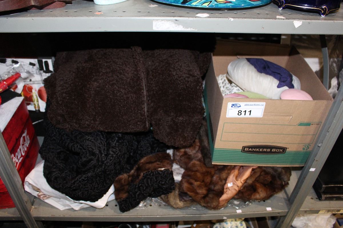 SHELF LOT OF VINTAGE CLOTHING, HATS ETC