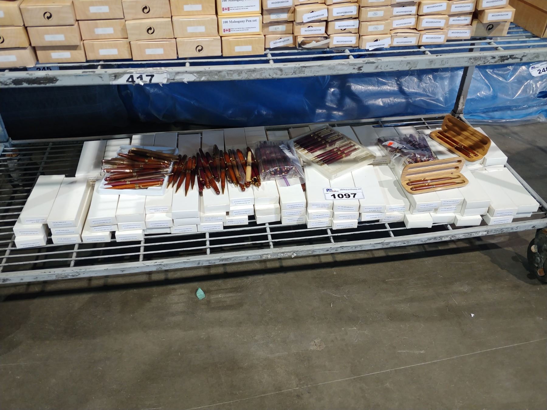 SHELF LOT OF WOOD PENS AND WOOD PEN CASES
