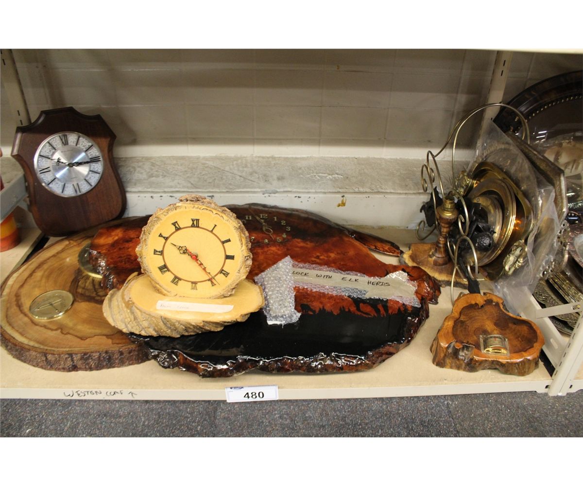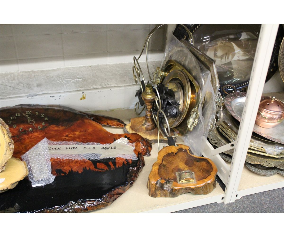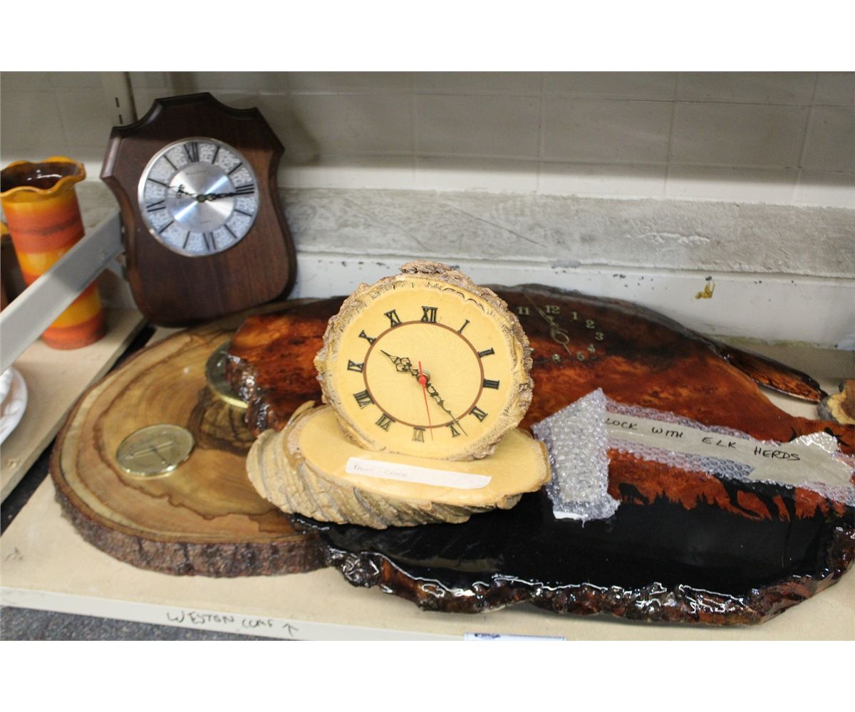 SHELF LOT OF WOODEN WALL CLOCKS AND MORE!