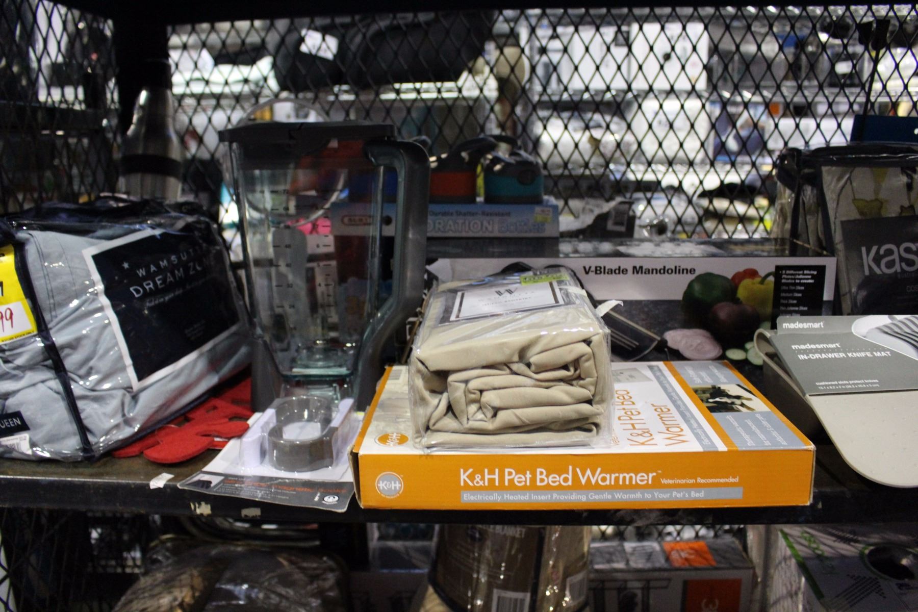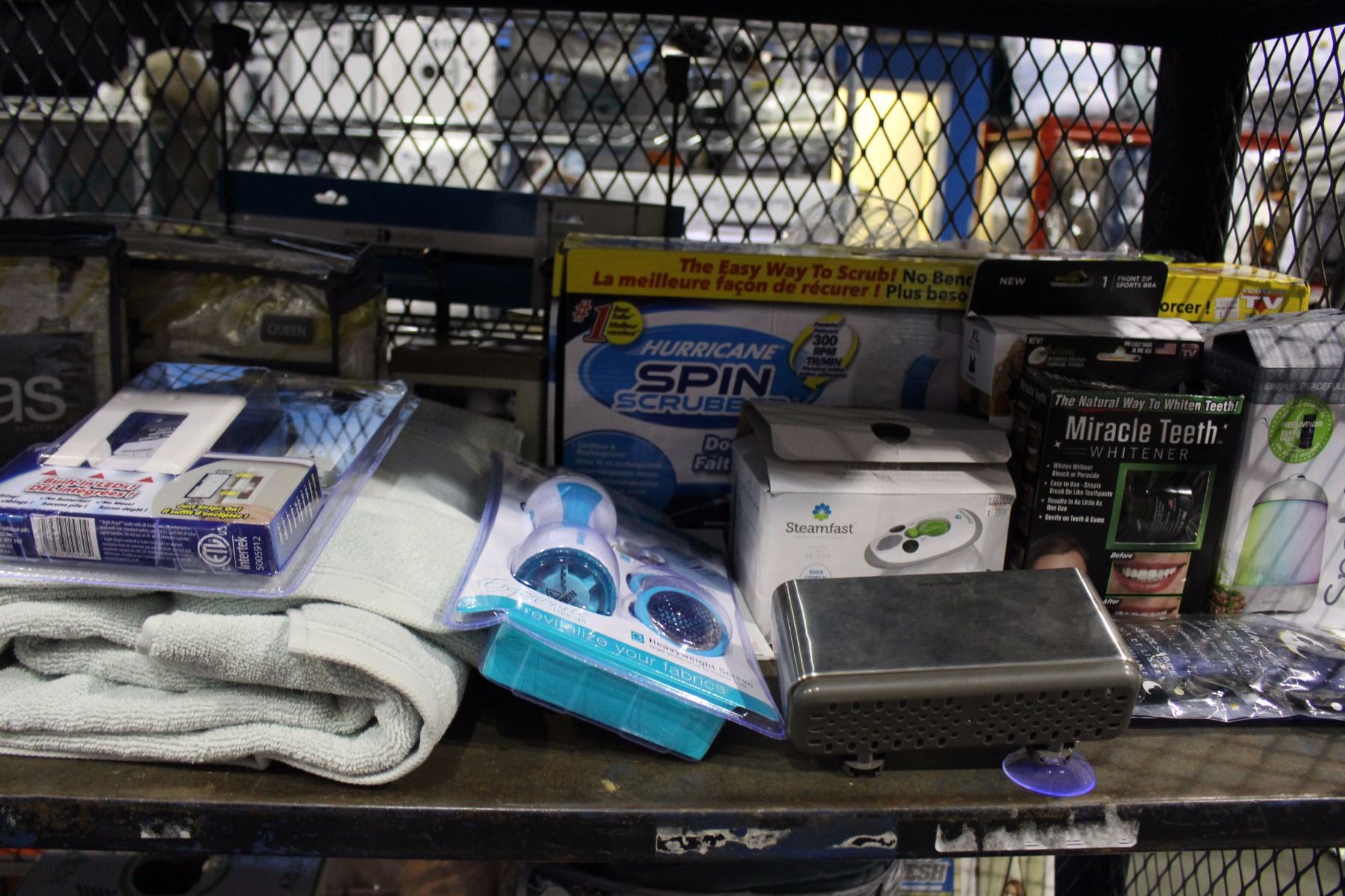 SHELF LOT - QUEEN SIZED SHEET SET, HURRICANE SPIN SCRUBBER, AND MANY MORE HOUSE HOLD ITEMS