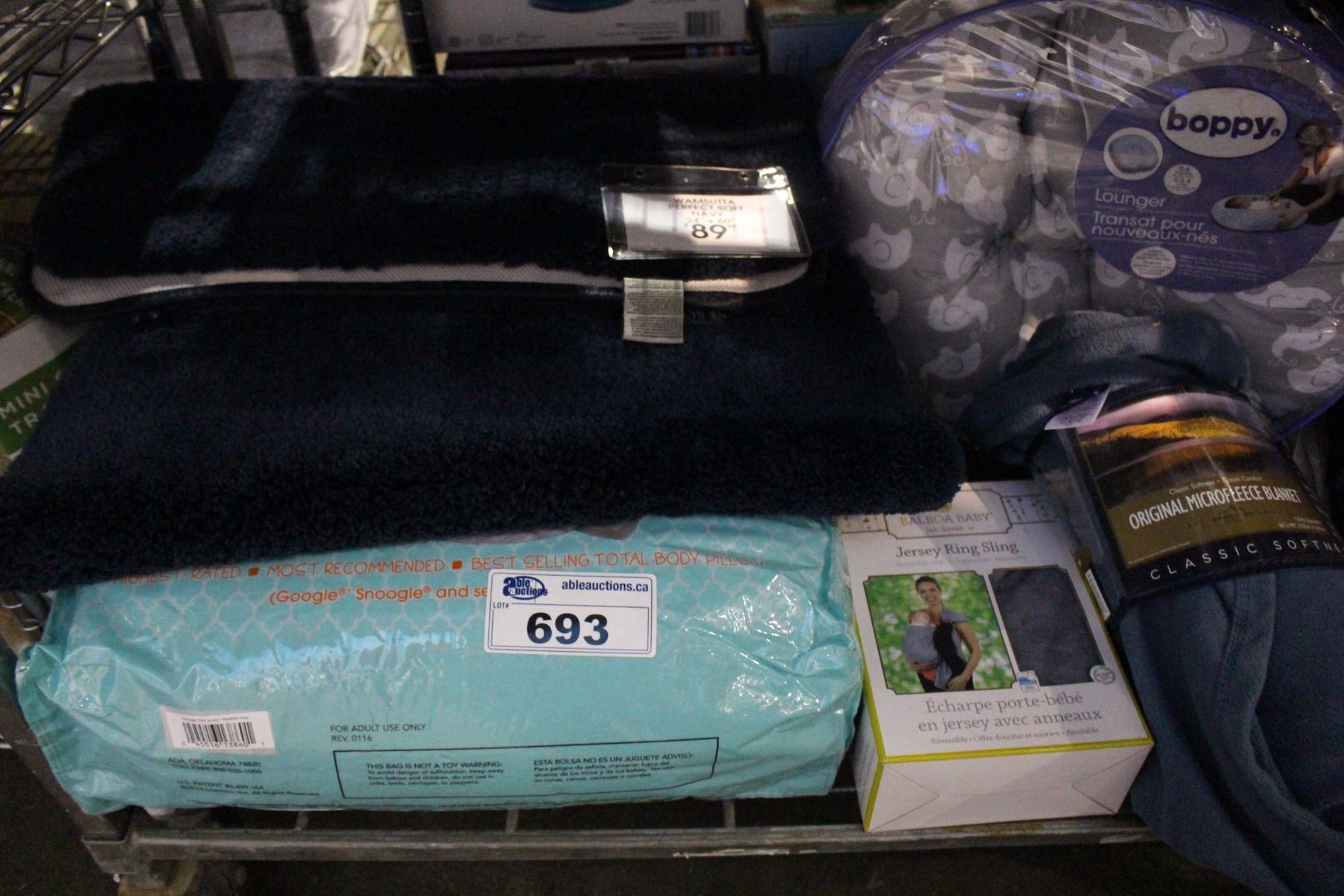 SHELF LOT - SNOOGLE, LOUNGER FOR BABY, MANY MORE HOUSEHOLD ITEMS