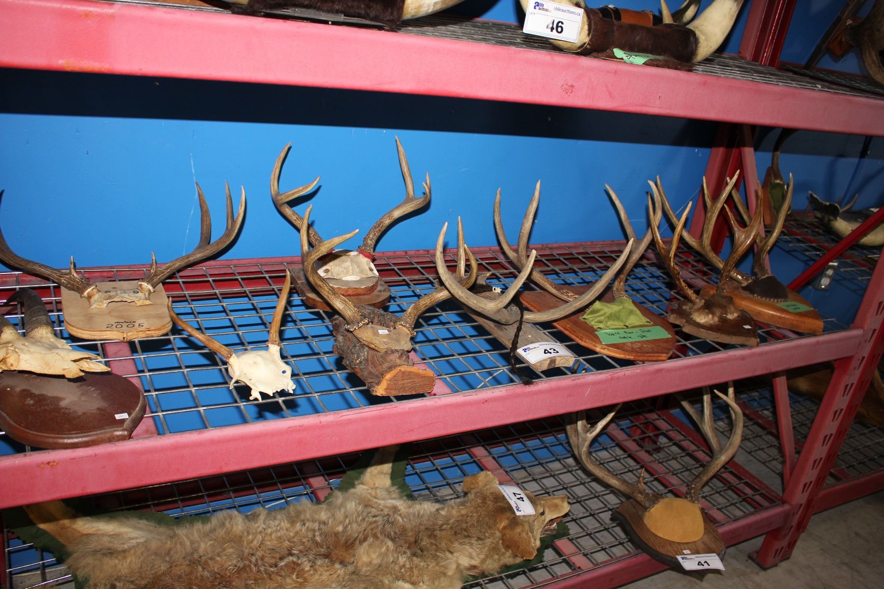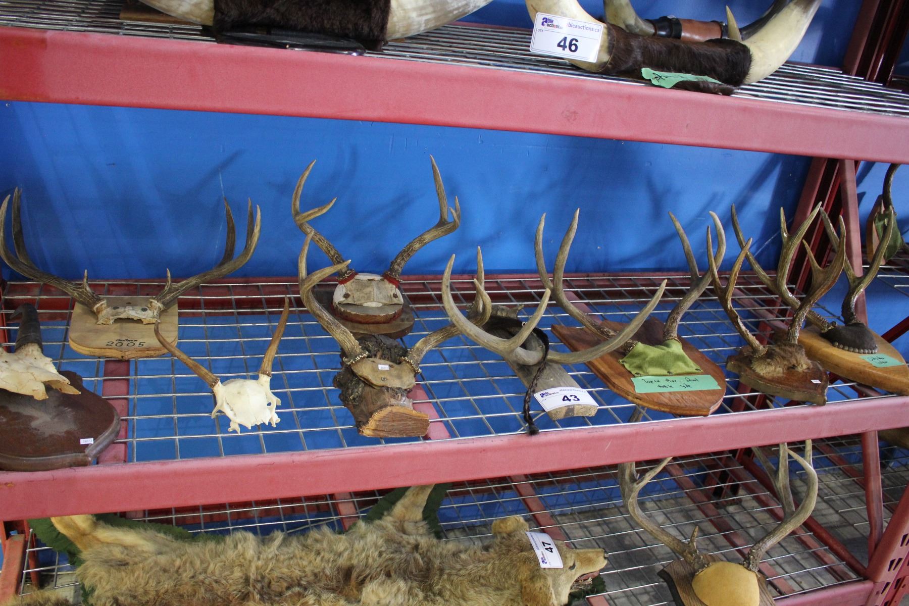 SHELF OF ANTLERS/SKULL WALL MOUNTS AND MORE