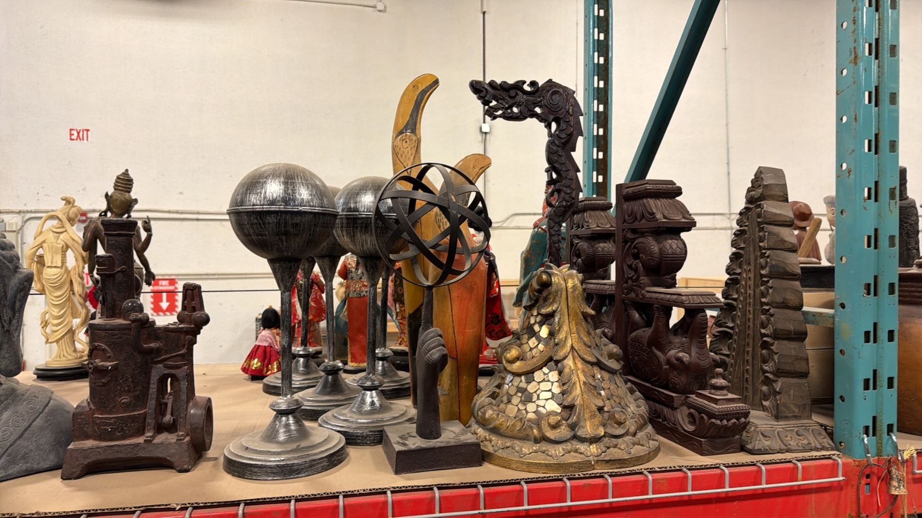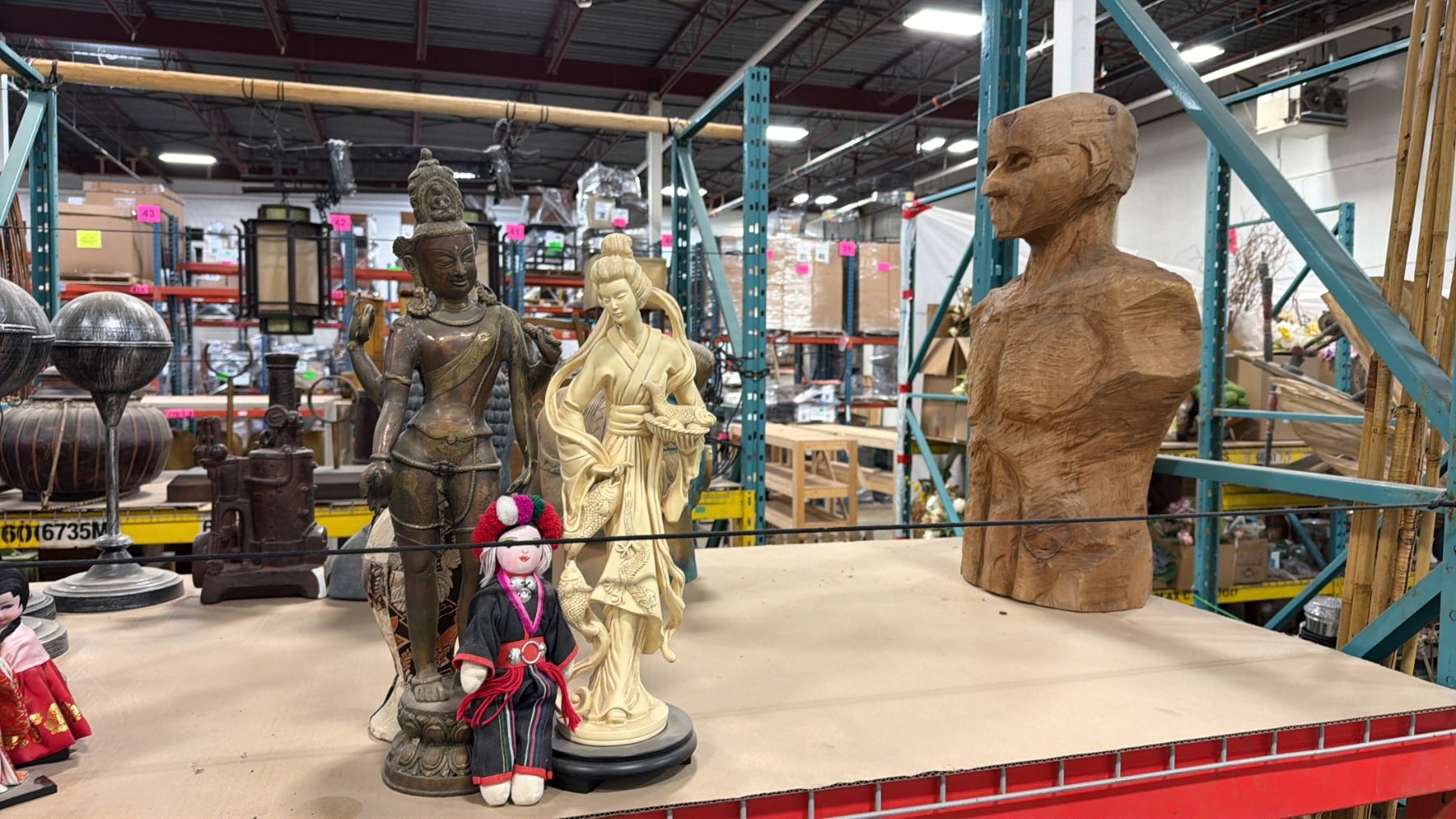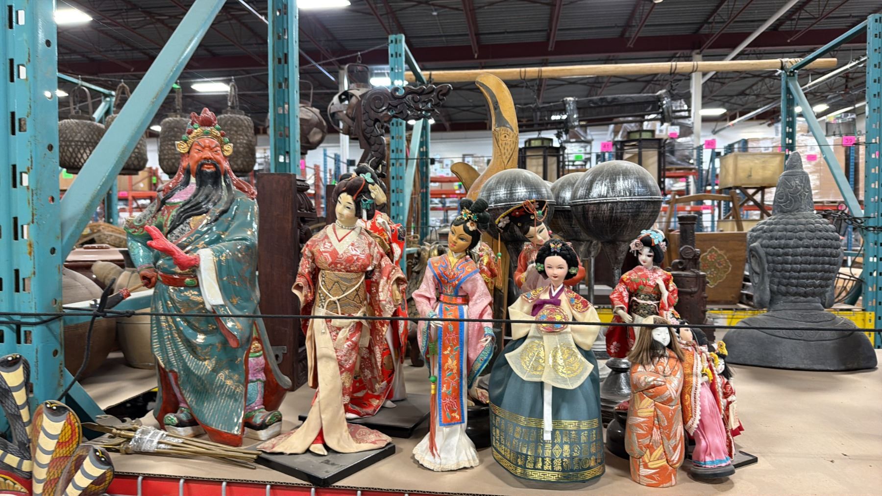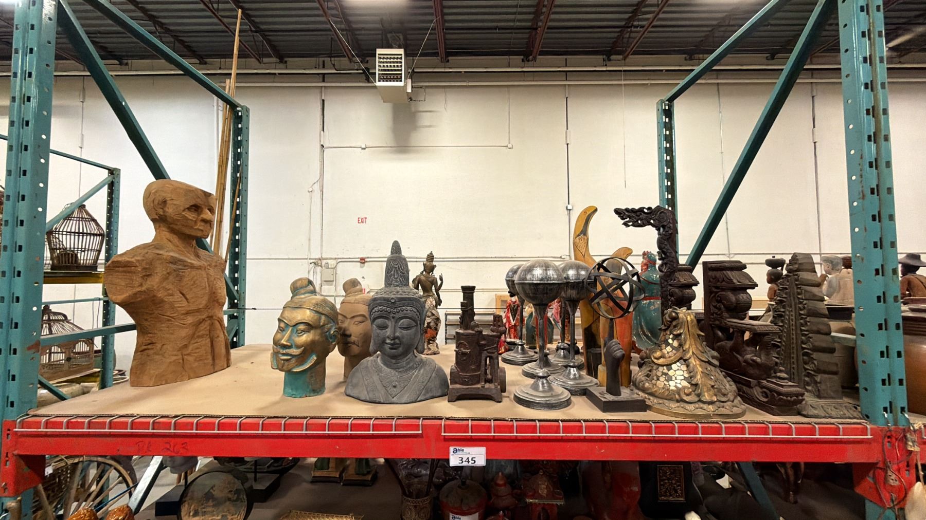SHELF OF ASIAN MOTIF STATUES & ART DECOR ITEMS