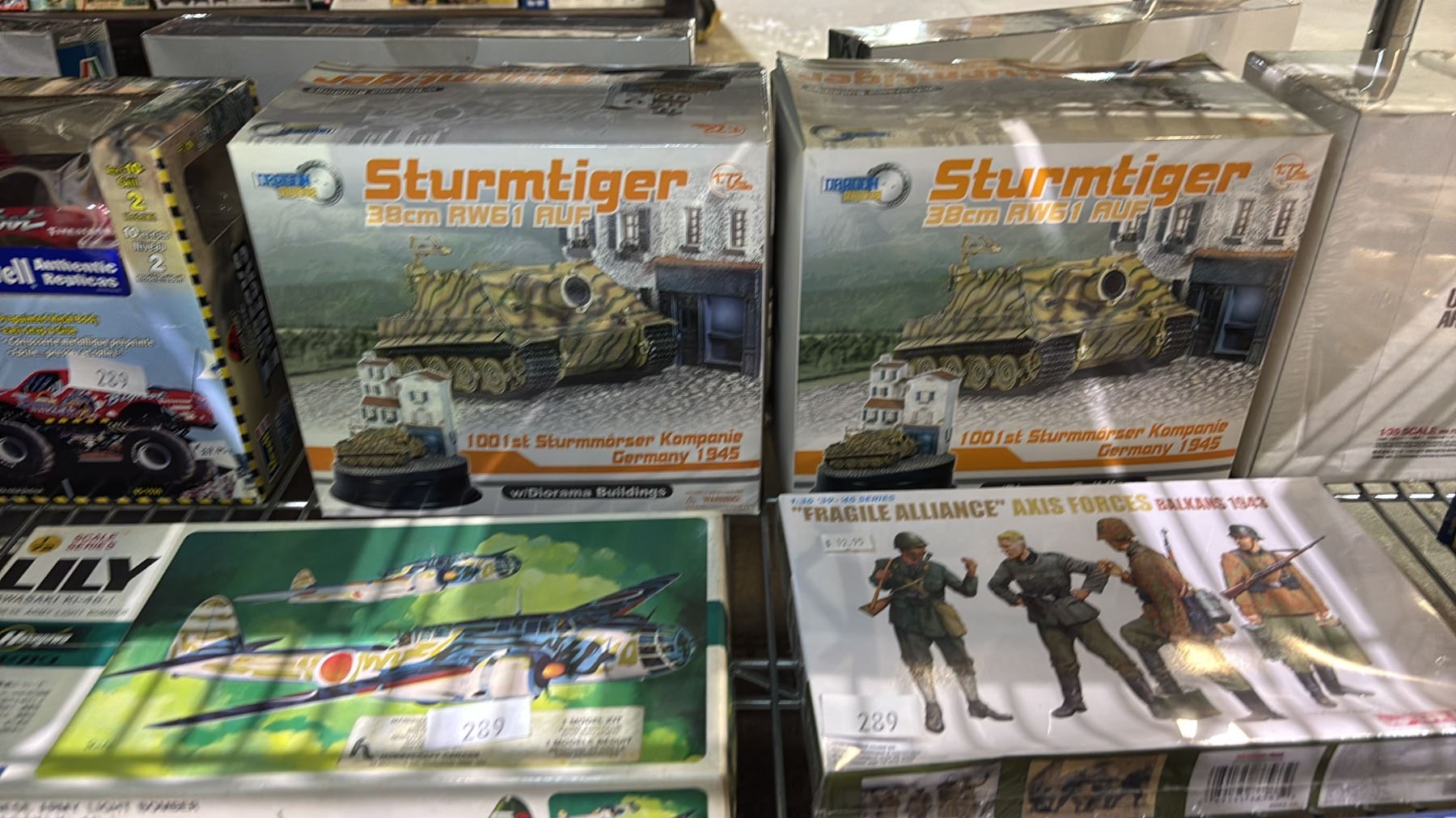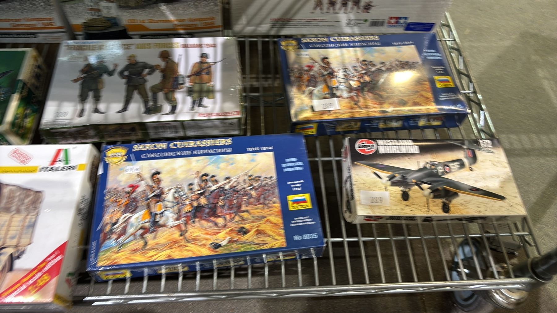 SHELF OF ASSORTED AIR & GROUND VEHICLE MODEL KITS: AIRFIX, ZVEZDA. REVELL & MORE