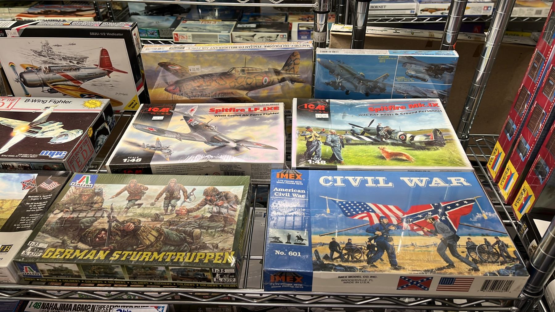 SHELF OF ASSORTED AIRCRAFT & MILITARY FIGURE MODEL KITS
